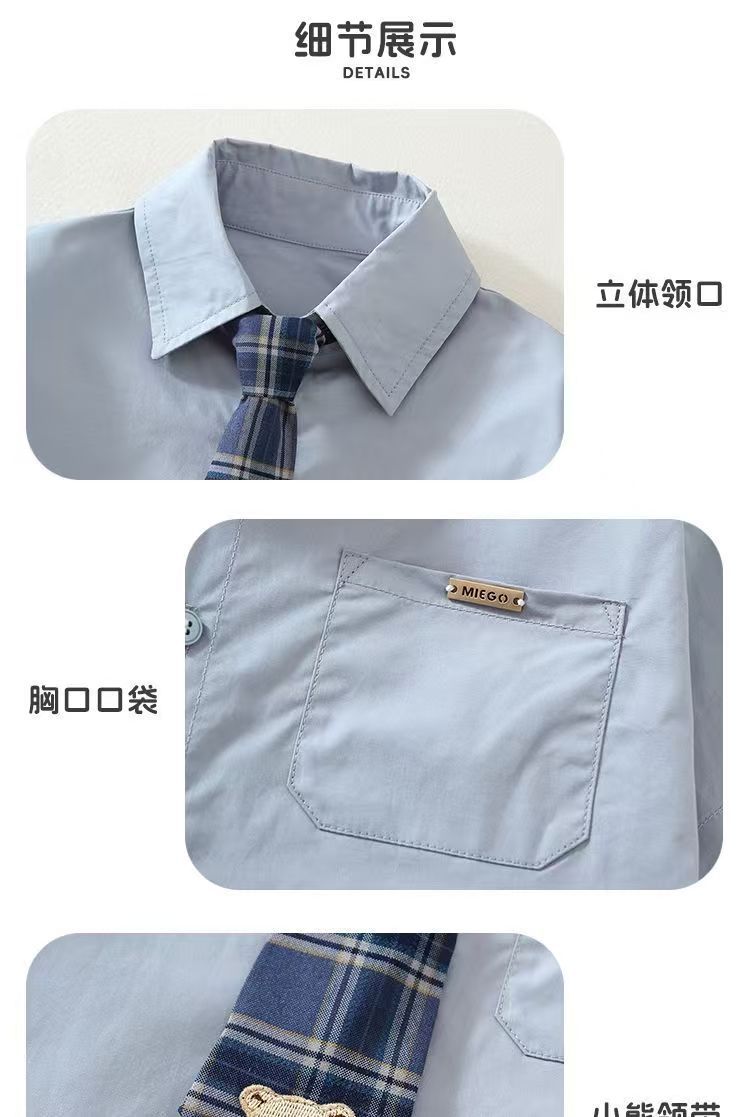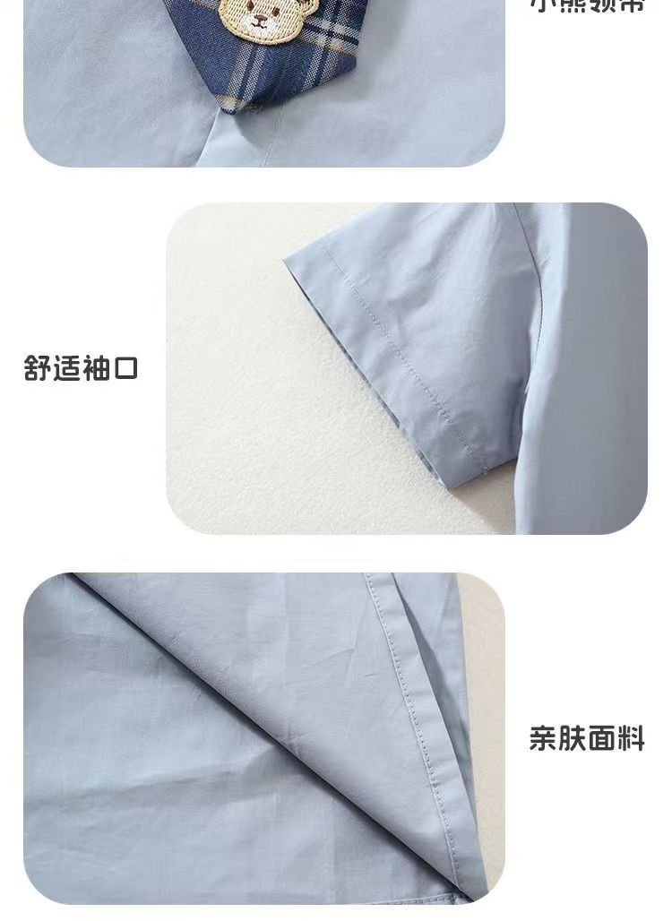 2025 새로운 여름 스타일 옷깃 컬러 블록 격자 무늬 넥타이 캐주얼 만화 카디건 옷깃 반팔 셔츠 정장 시원하고 잘 생긴