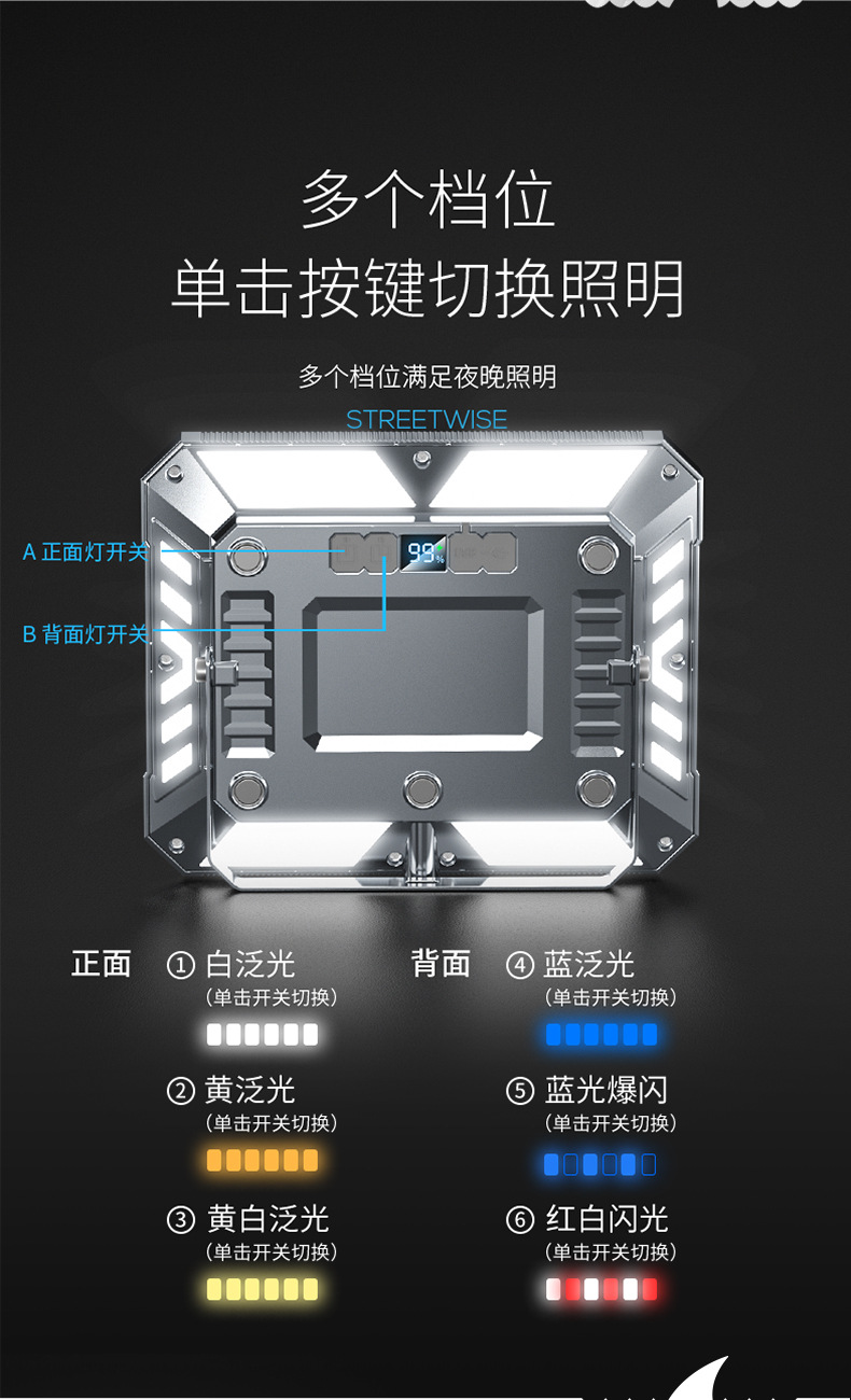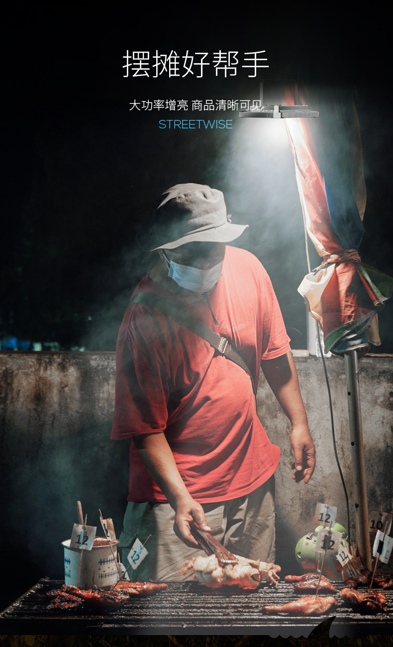 야외 작업 조명, 캠핑 조명, 긴 배터리 수명, 정전 비상 조명, 텐트 걸이형 야시장 스톨 조명