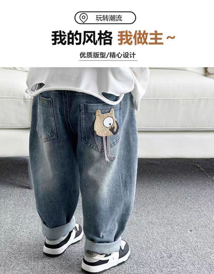 청바지 소년 2025 새로운 어린이 봄, 가을 얇은 밝은 색상 스트레이트 바지 소년 한국 스타일 바지 아기 어린이스토어 가기