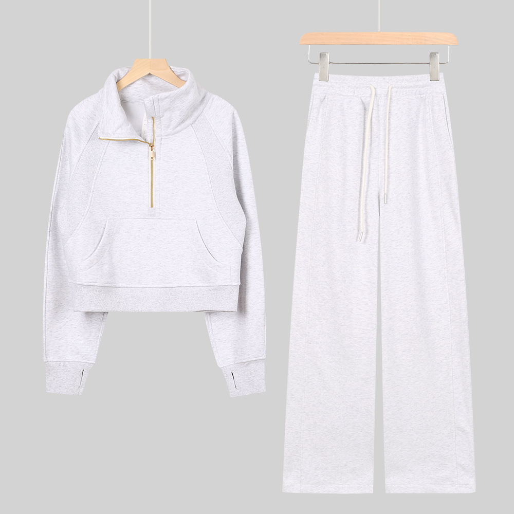• 스탠드 칼라 하프 풀 슈트 그레이 & 화이트 스타일
