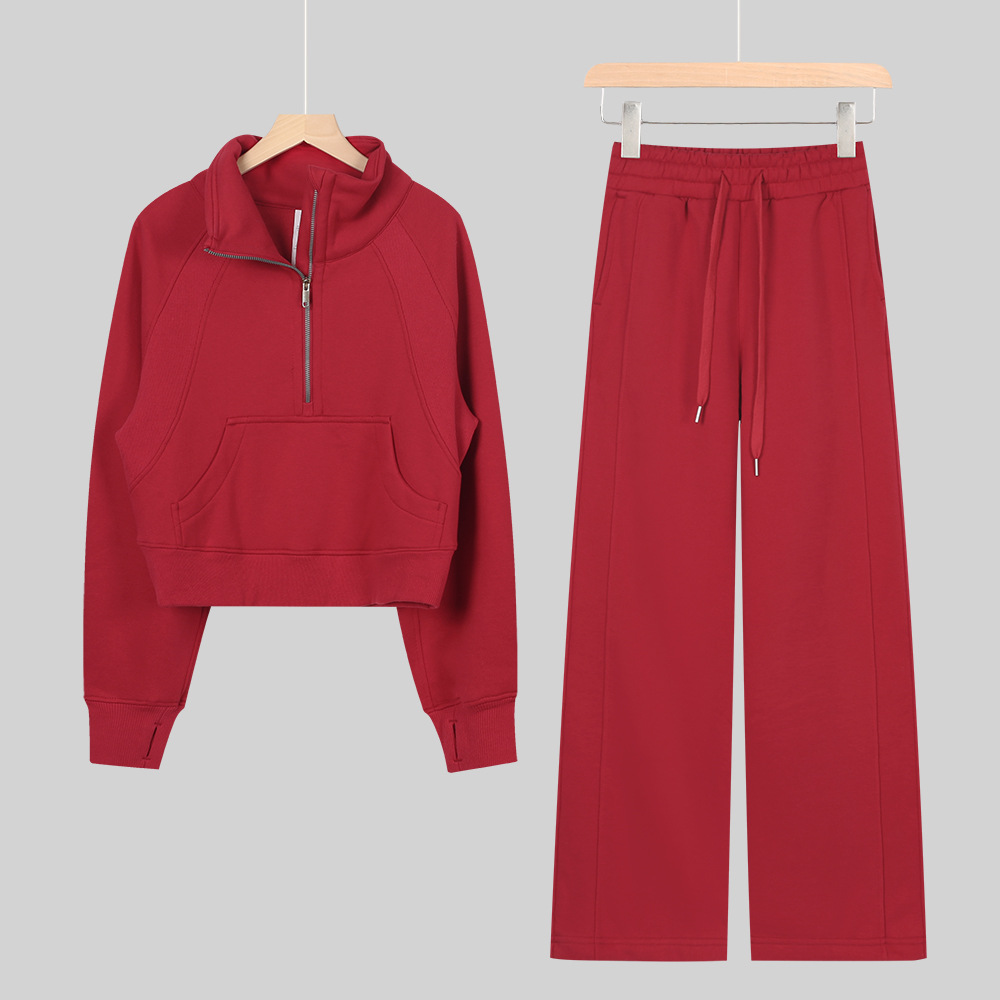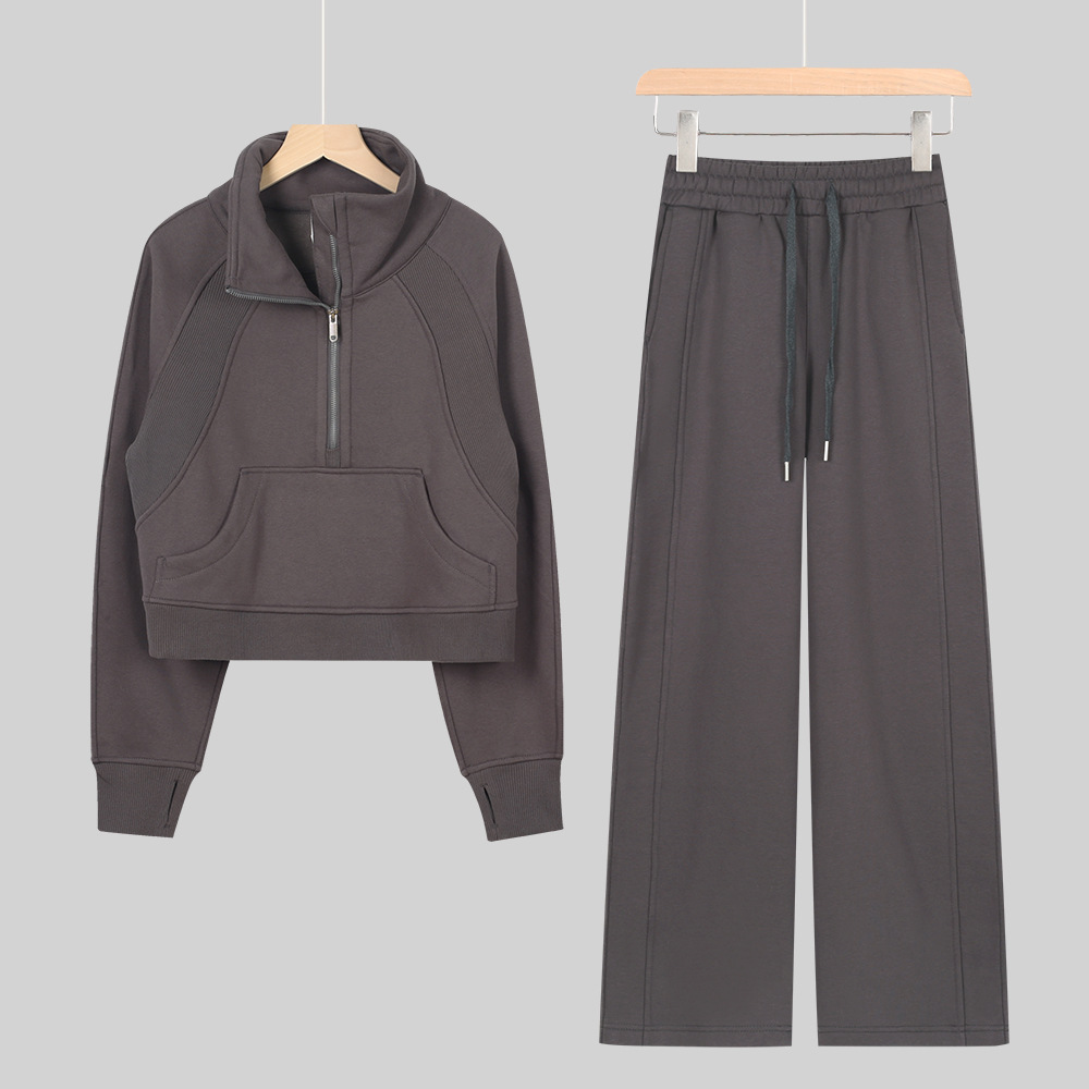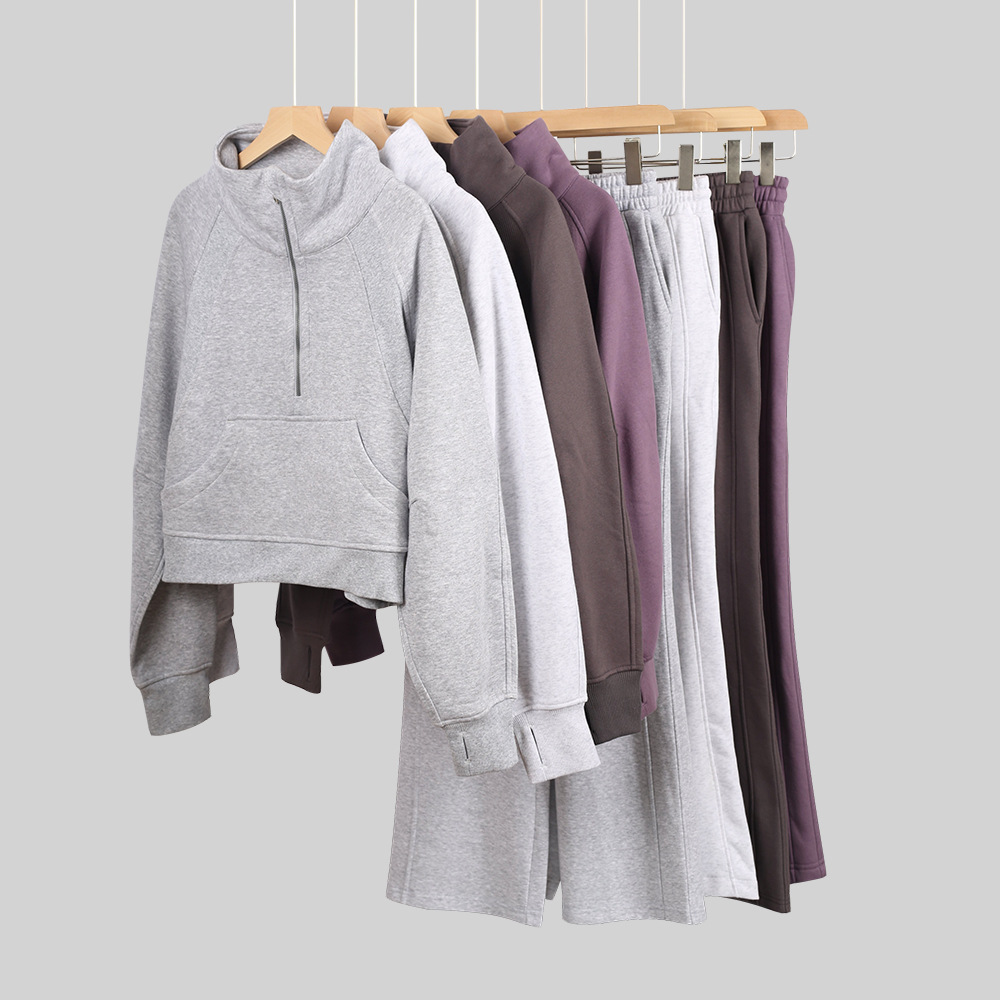 LULULACIE 스탠드 업 칼라 루즈 하프 스웨트 슈트 여성 스포츠 카디건 스쿠버 재킷 플러스 벨벳 요가웨어