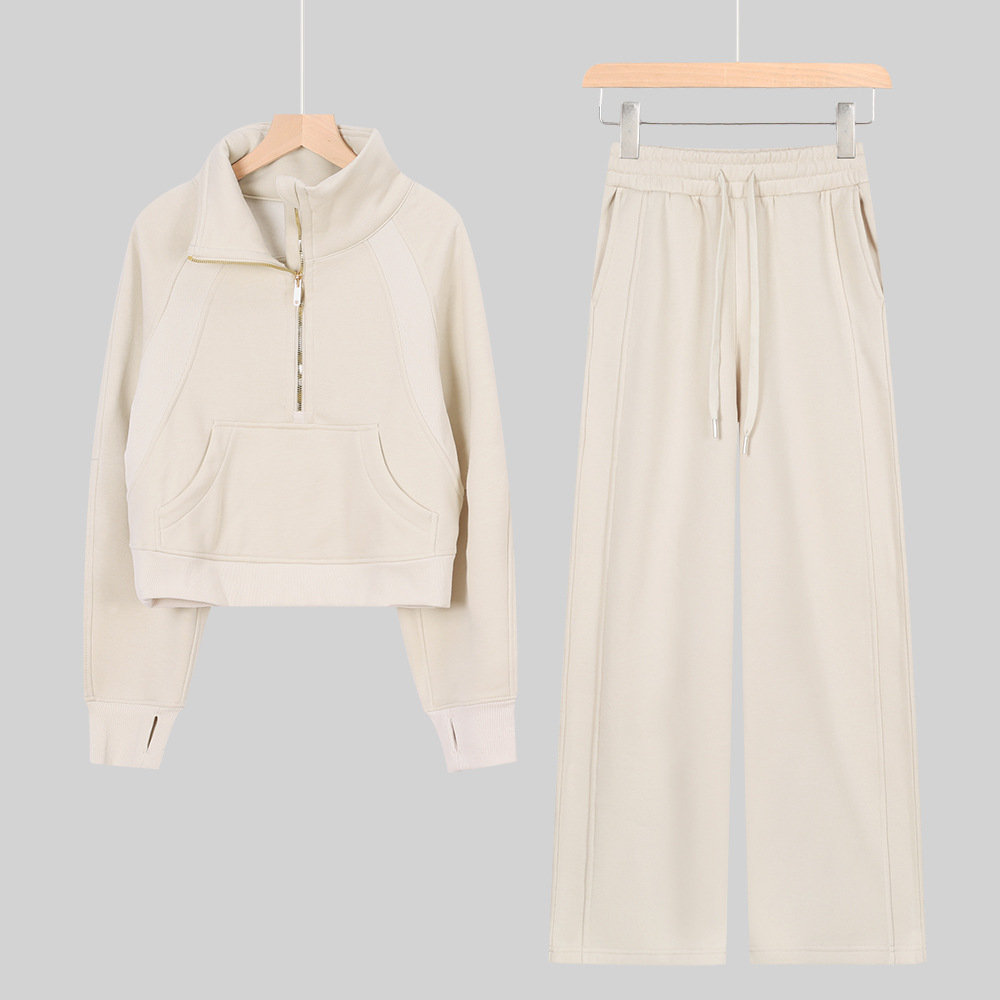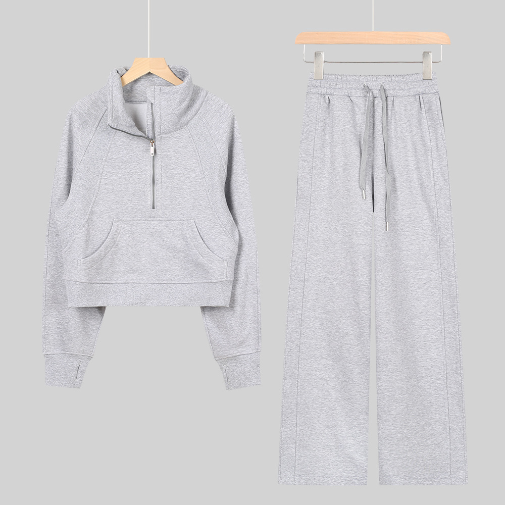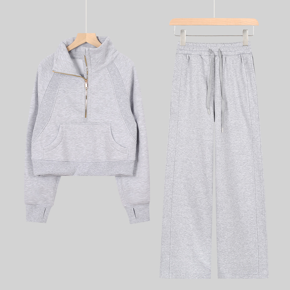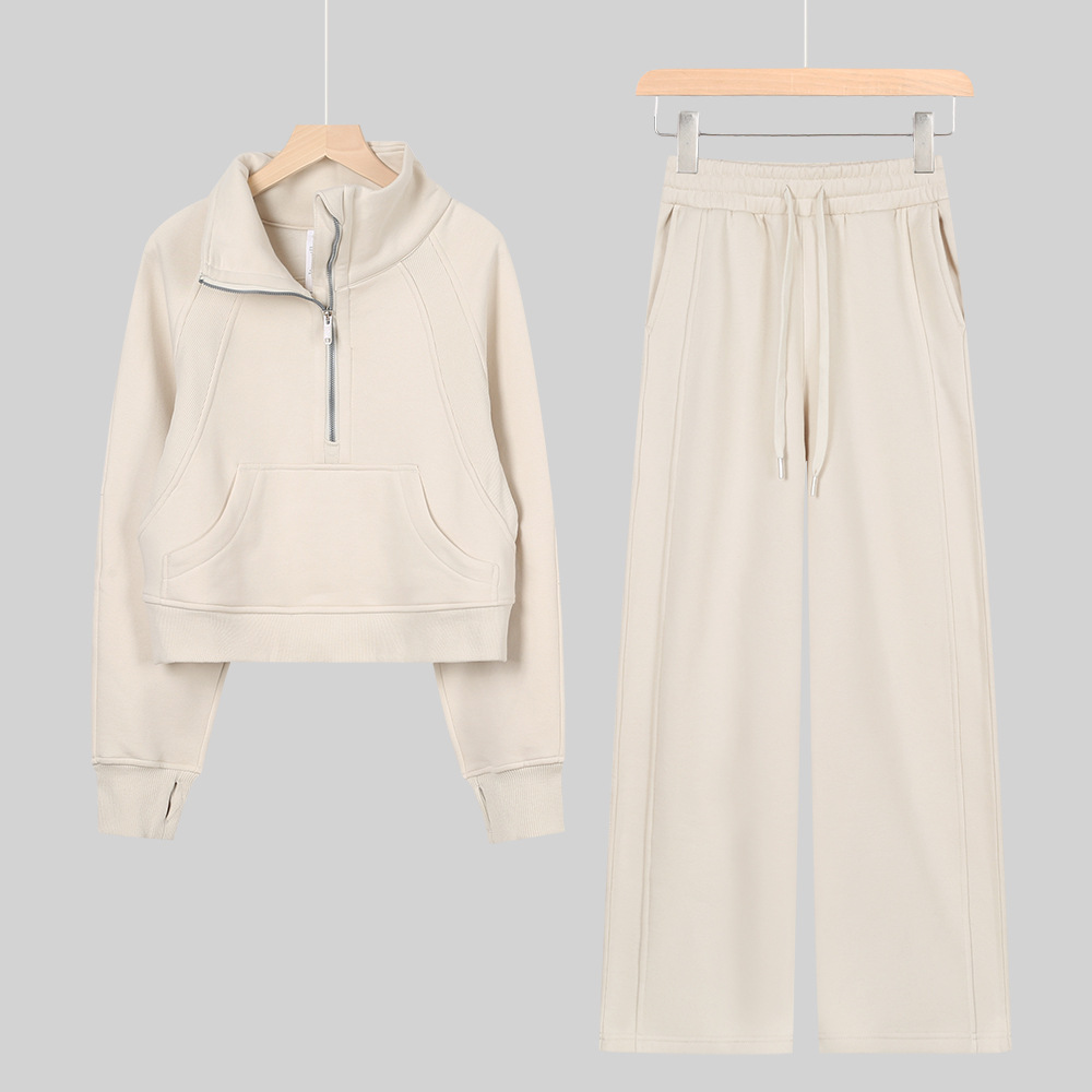LULULACIE 스탠드 업 칼라 루즈 하프 스웨트 슈트 여성 스포츠 카디건 스쿠버 재킷 플러스 벨벳 요가웨어