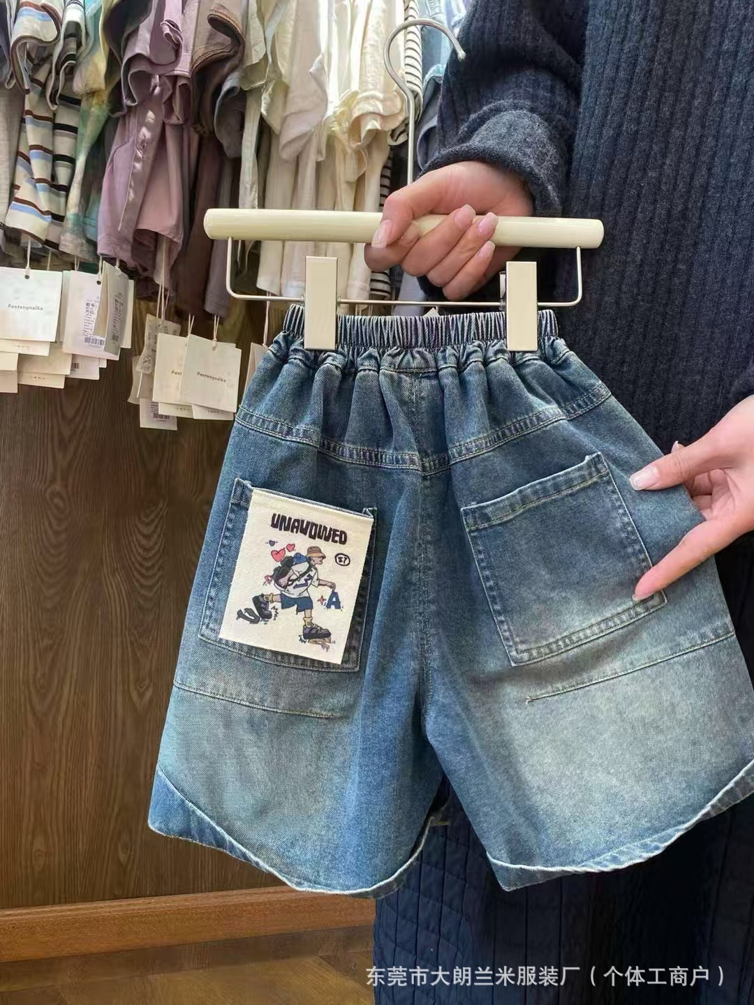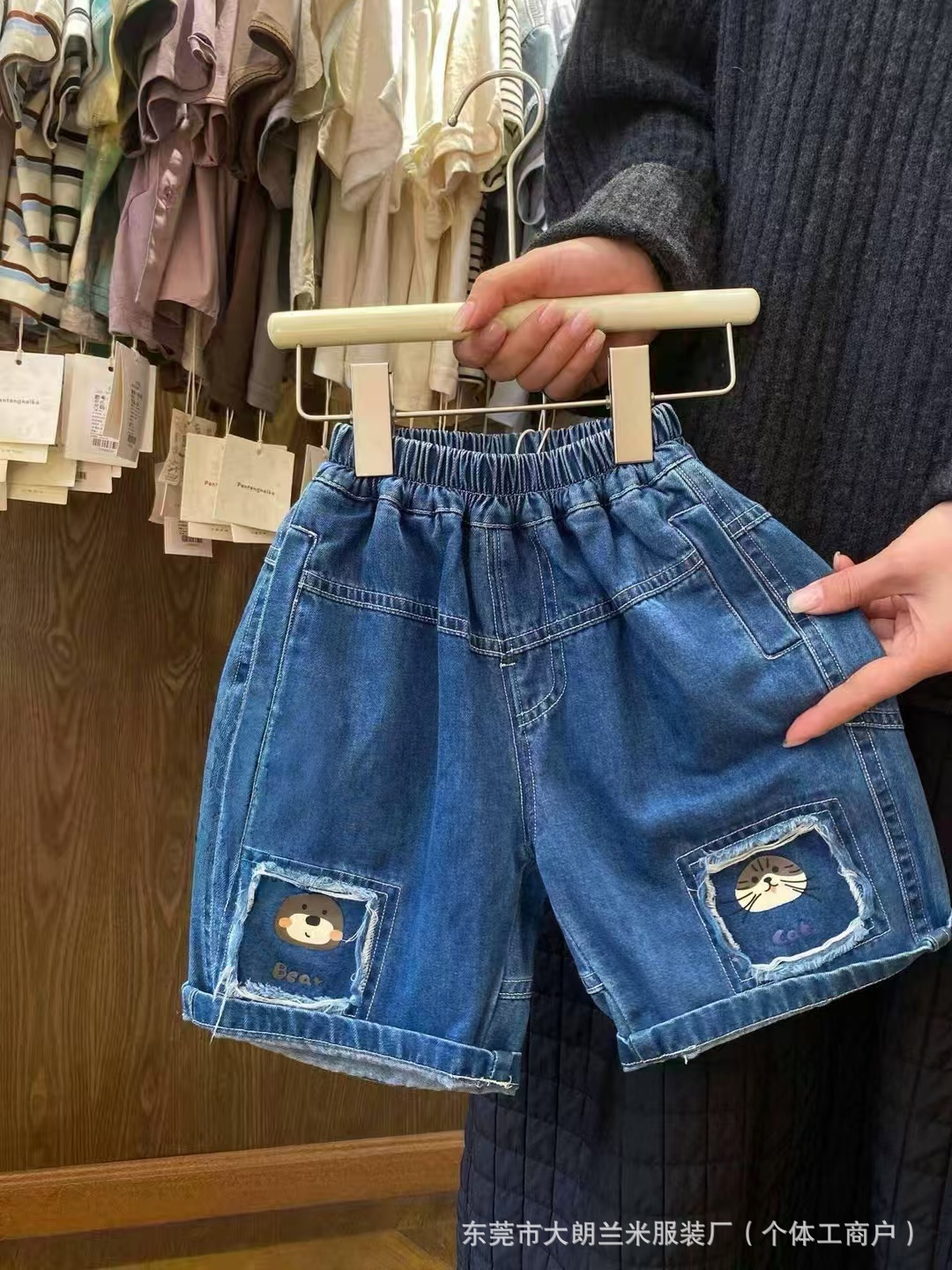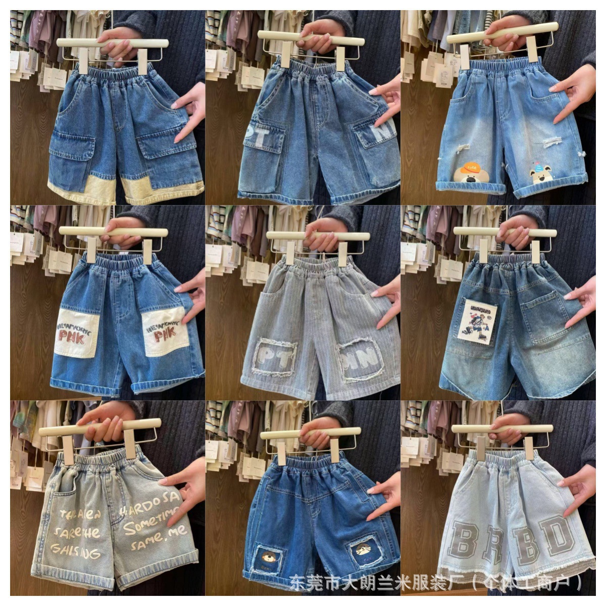 2025년 신상 여름 남아 여름 얇은 데님 반바지 한국식 아동복 중대형 아동복 도매스토어 가기