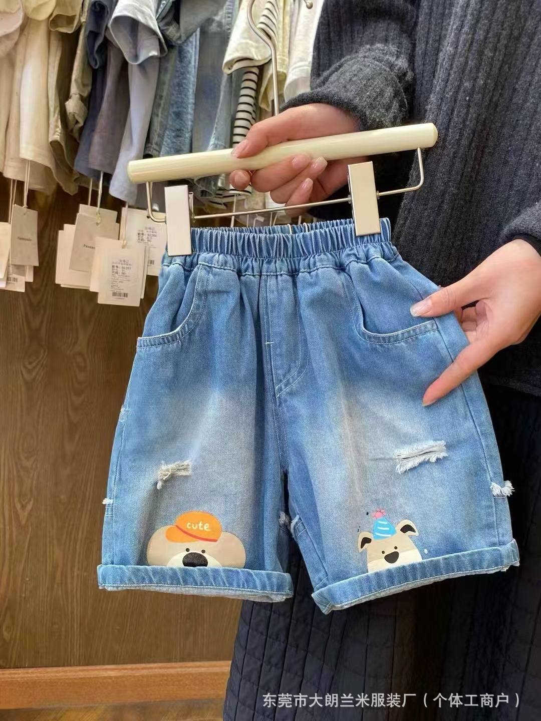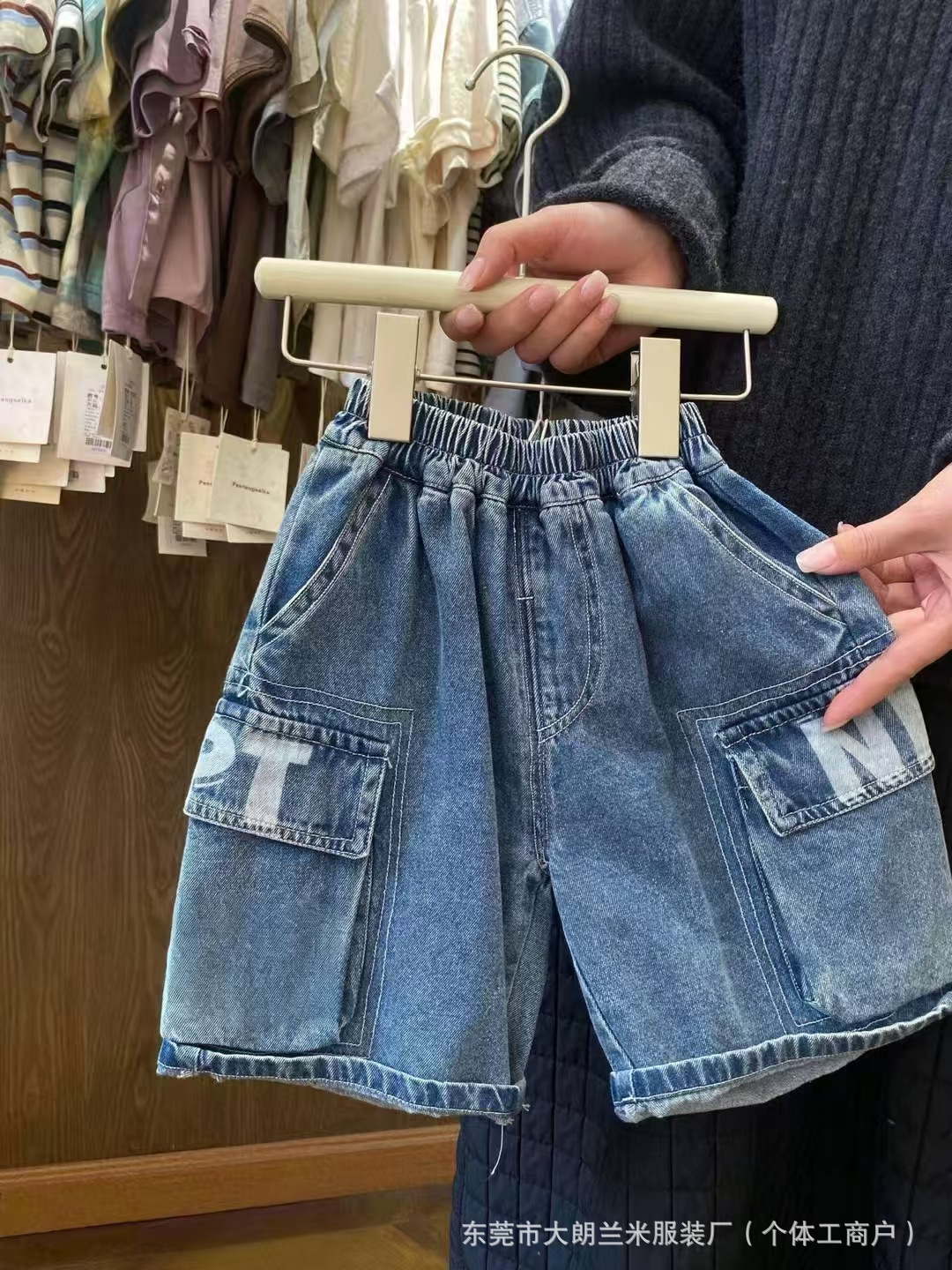 2025년 신상 여름 남아 여름 얇은 데님 반바지 한국식 아동복 중대형 아동복 도매