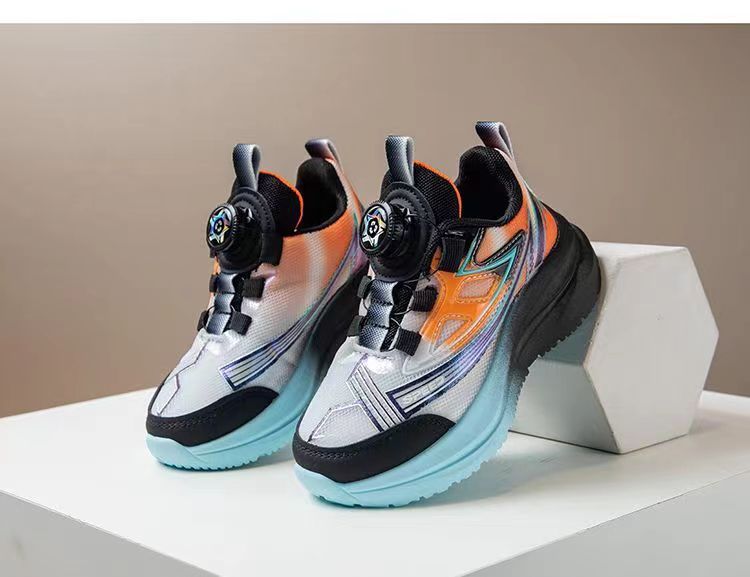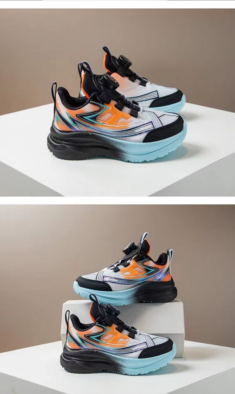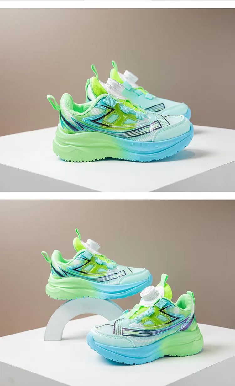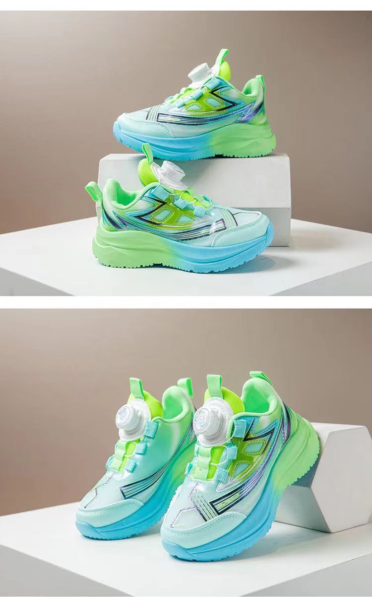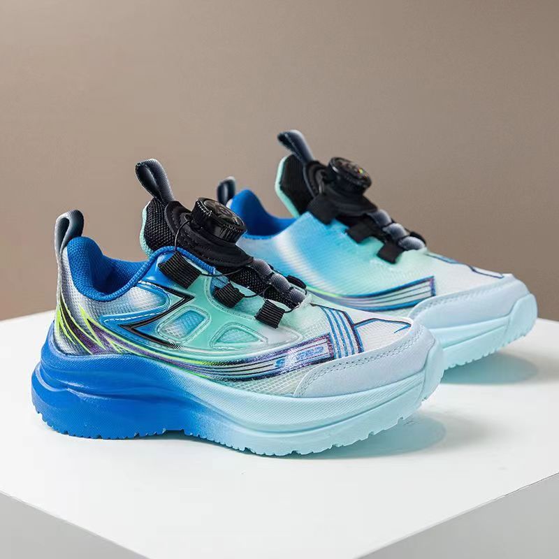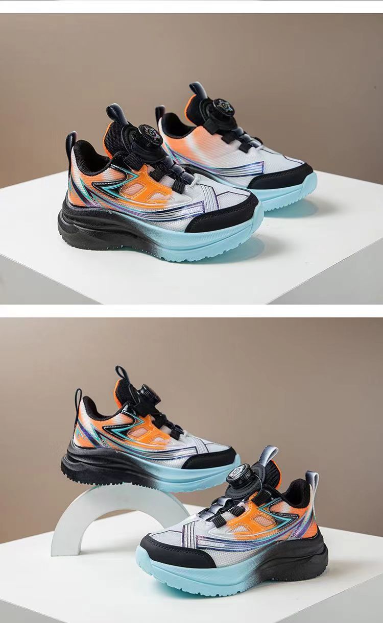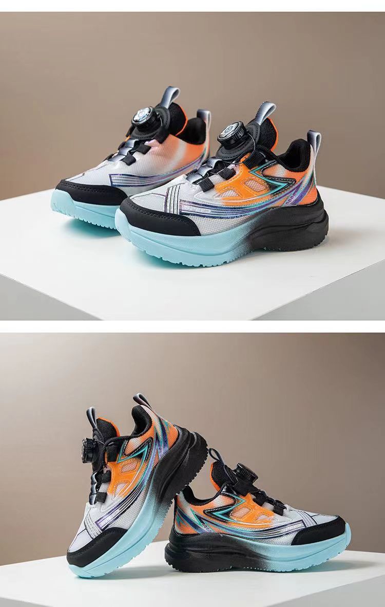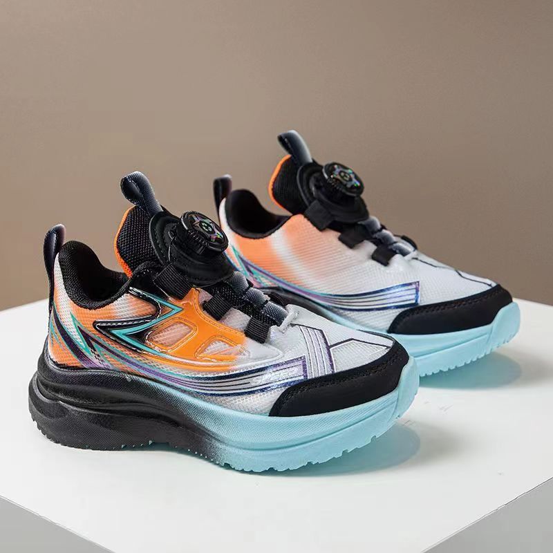 어린이 스포츠 신발 2025 가을 새로운 회전 버튼 메쉬 운동화 소년 스포츠 신발 얇은 운동화 유행