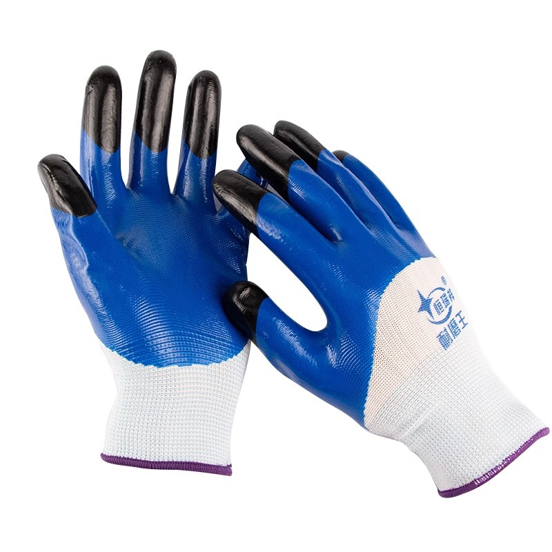 Hengruixiang 강화 손가락 걸이 접착제 함침 장갑 이중층 내마모성 미끄럼 방지 통기성 노동 보호 장갑 도매스토어 가기