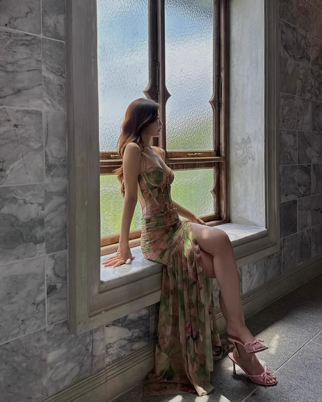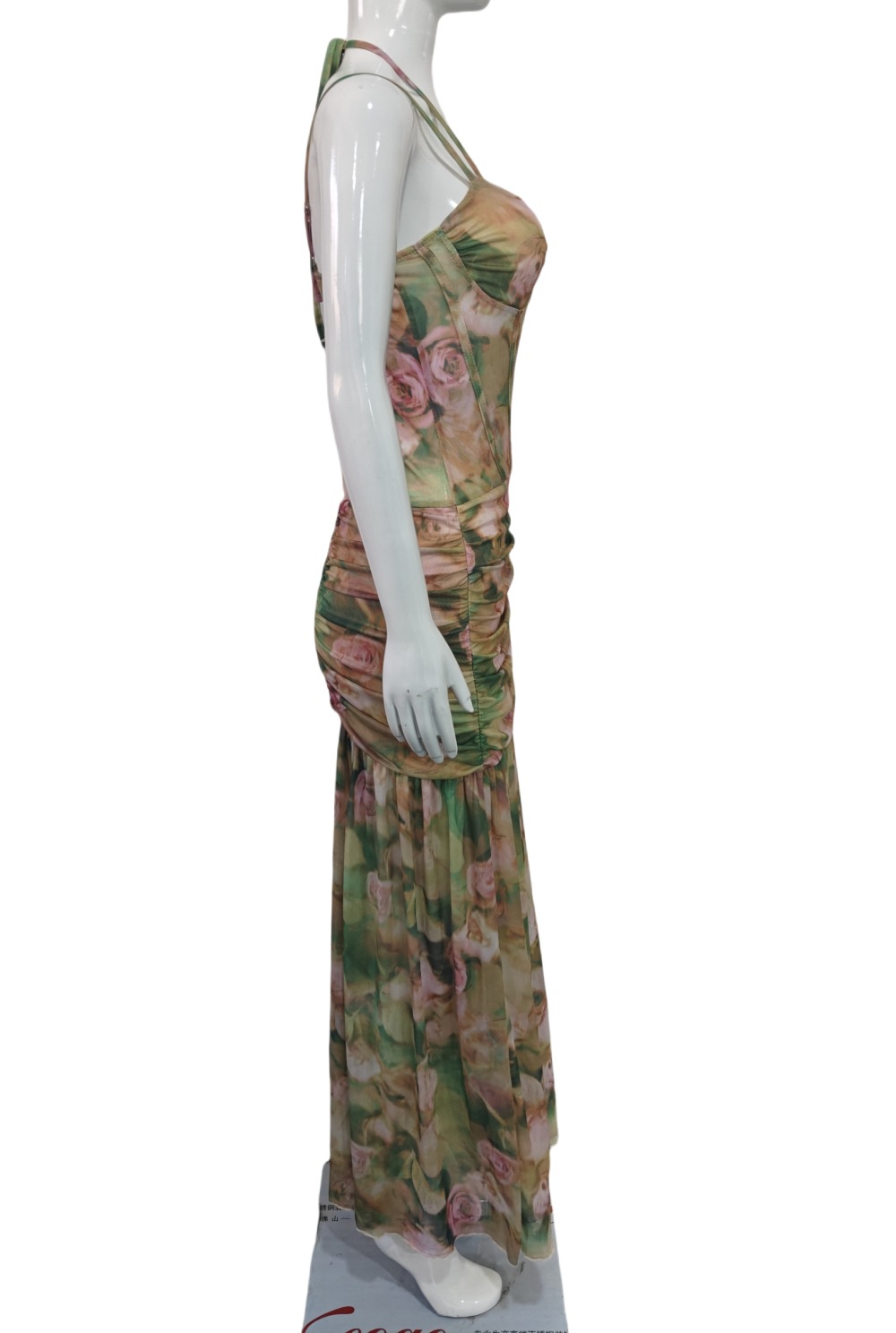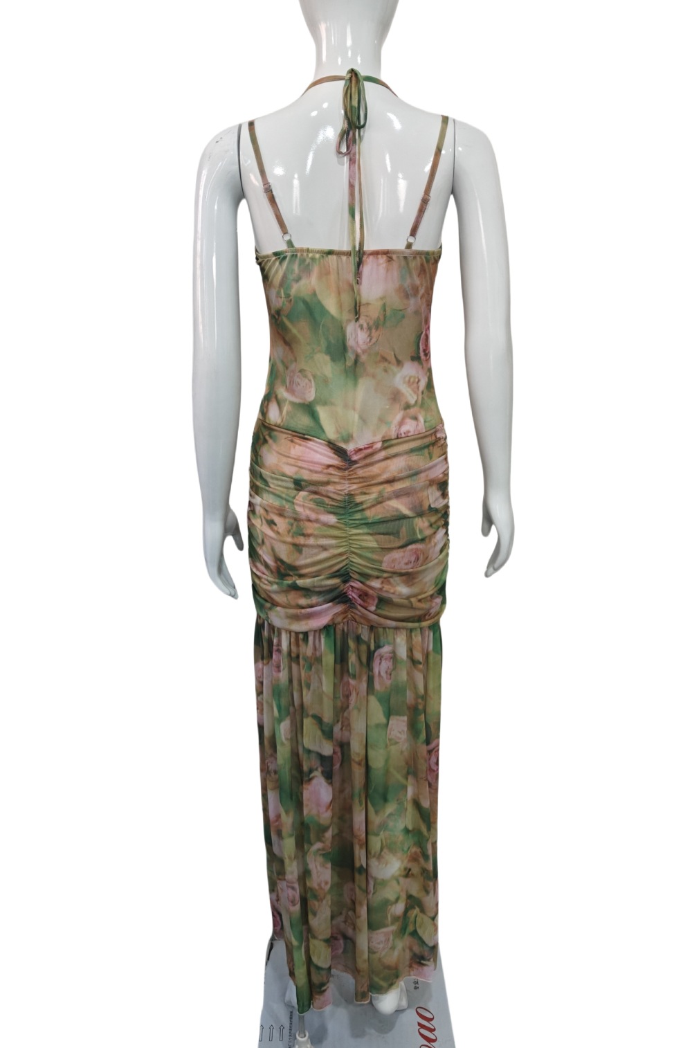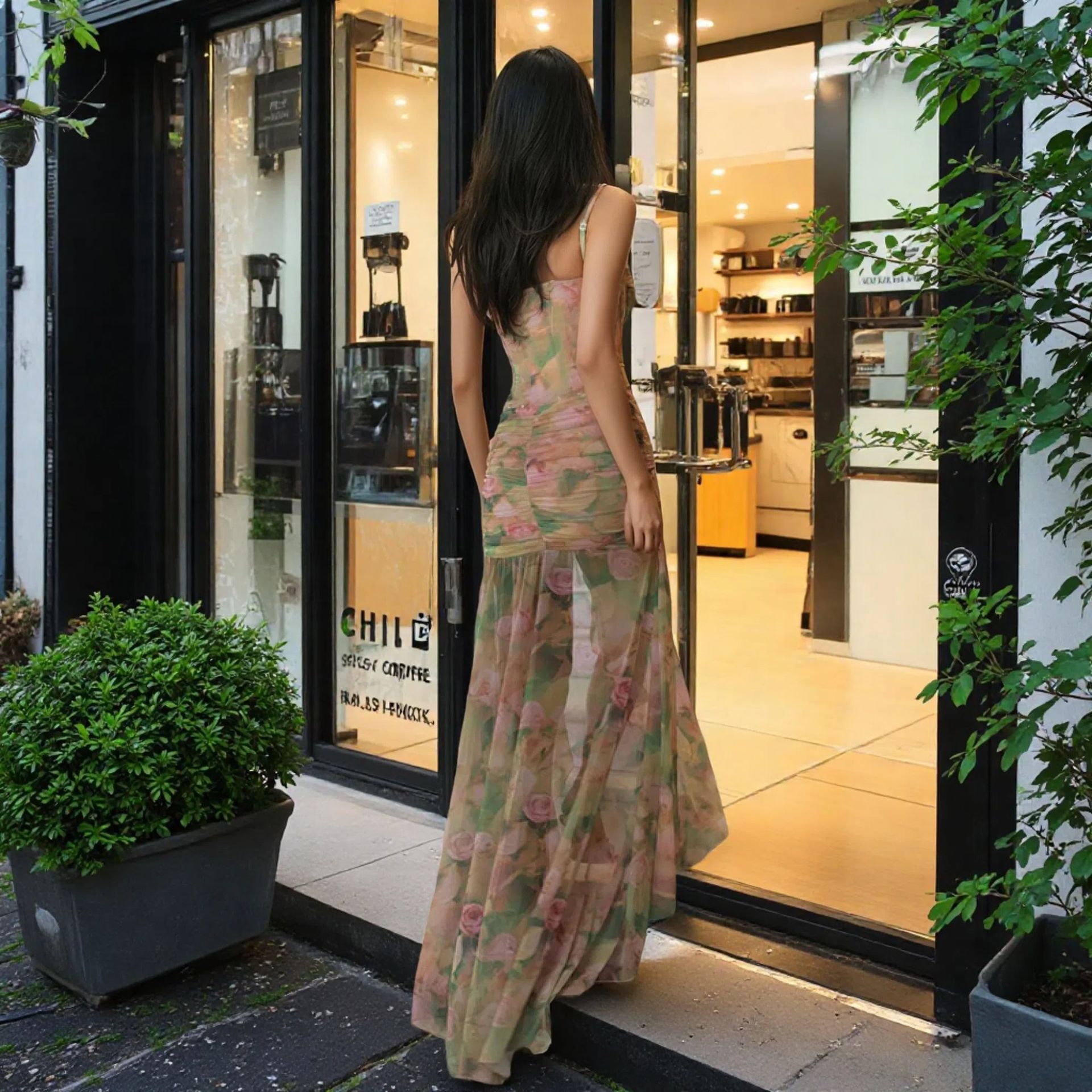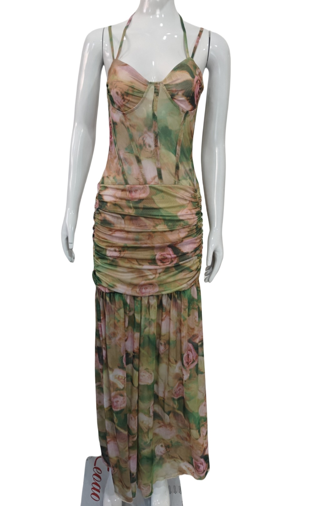 유럽과 미국 여성 의류 2025 여름 새로운 섹시한 서스펜더 프린트 휴가 해변 하이 웨이스트 슬림 슬릿 드레스 여성용스토어 가기