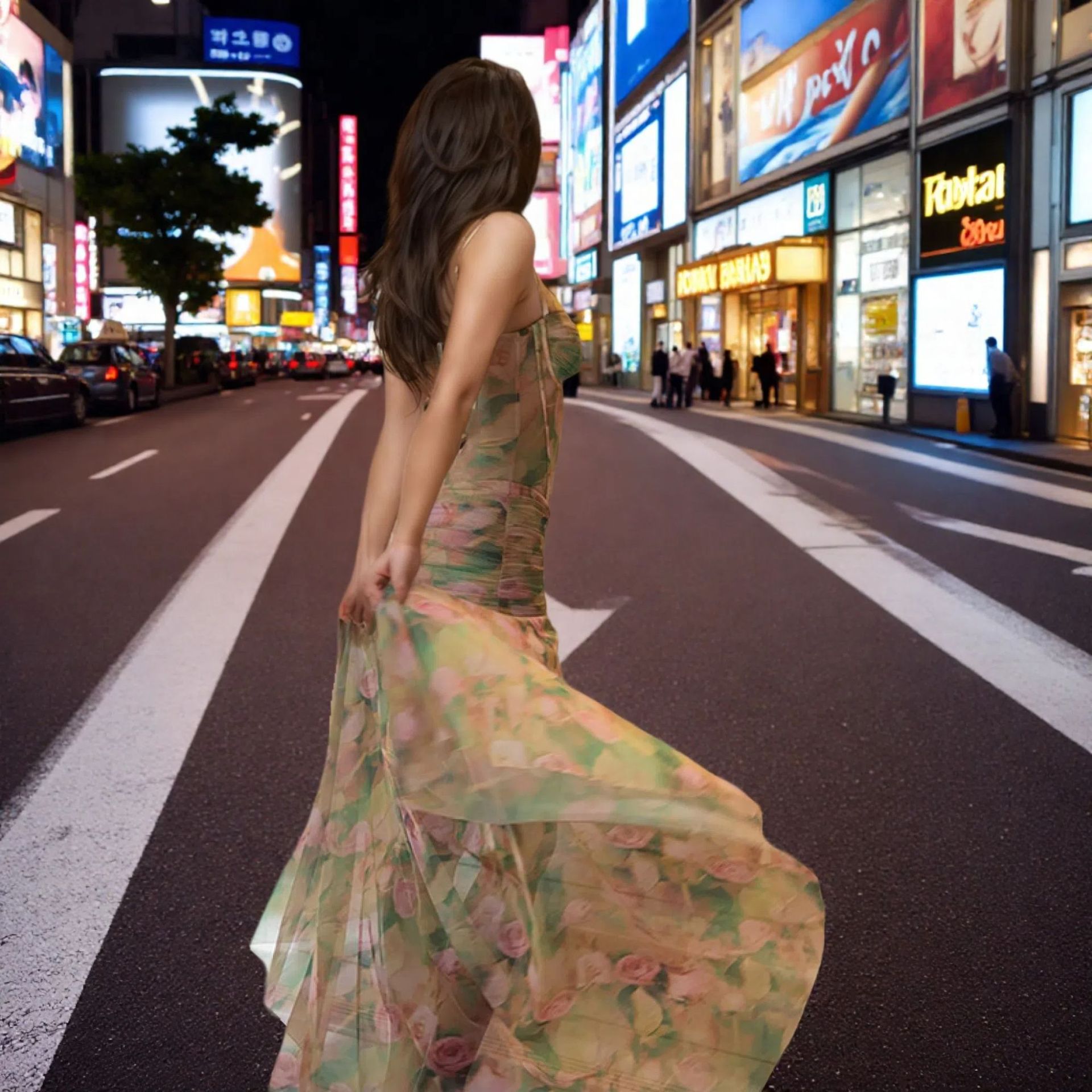 欧美女装2025夏季新款性感吊带印花度假沙滩高腰显瘦开叉连衣裙女