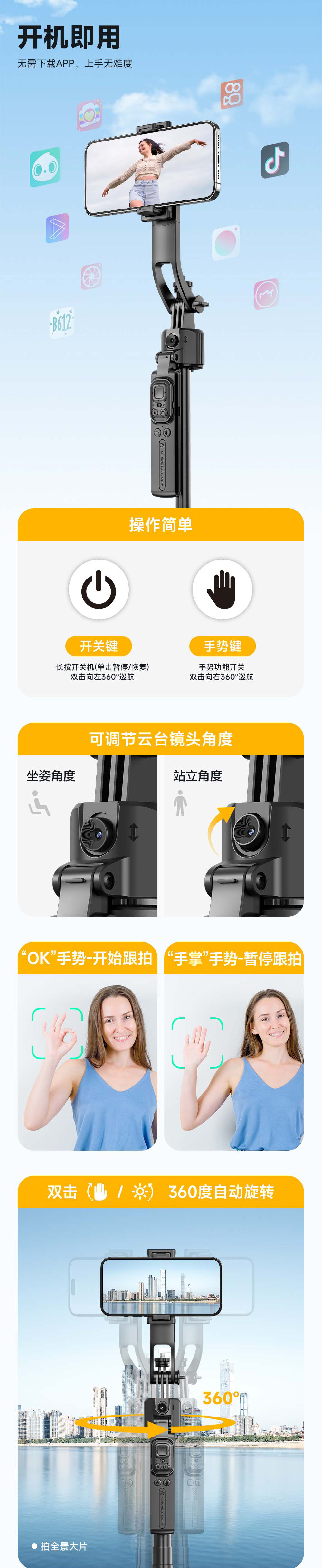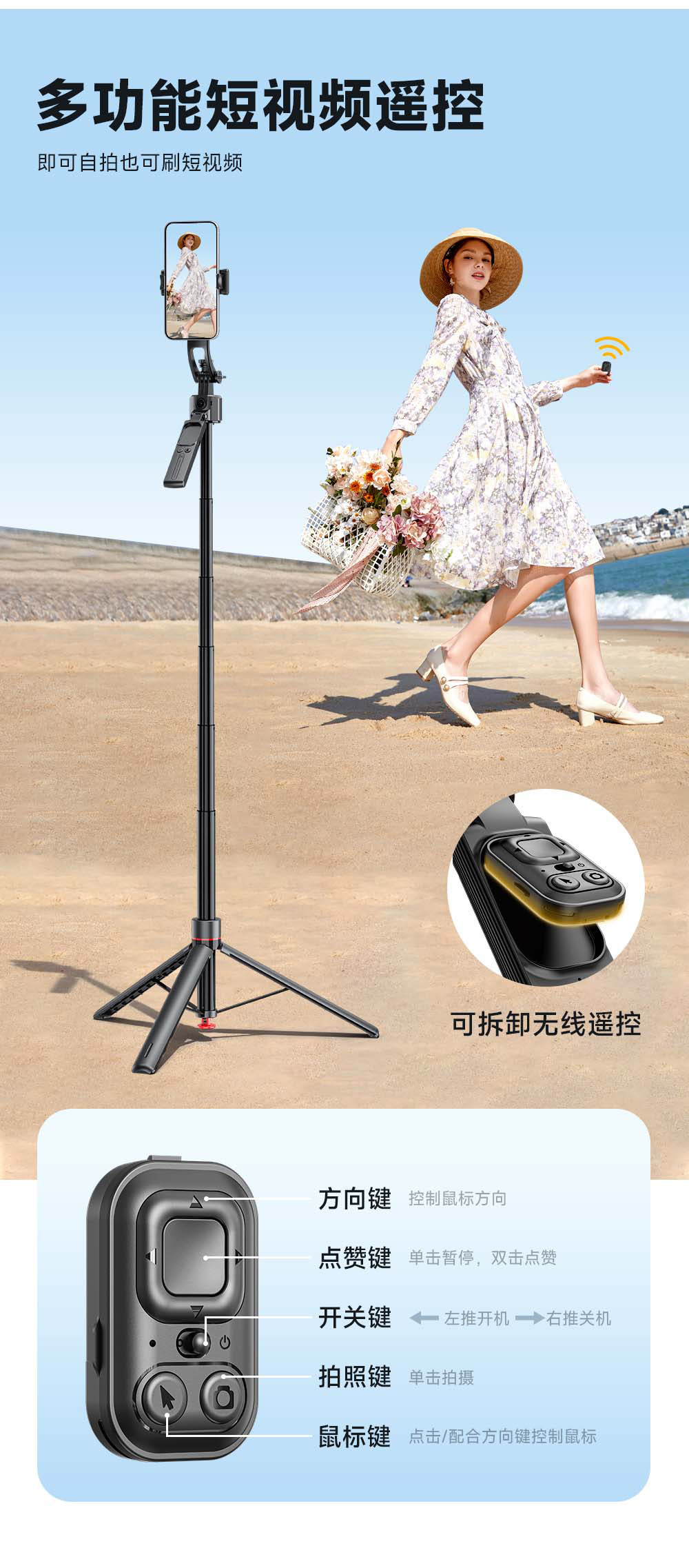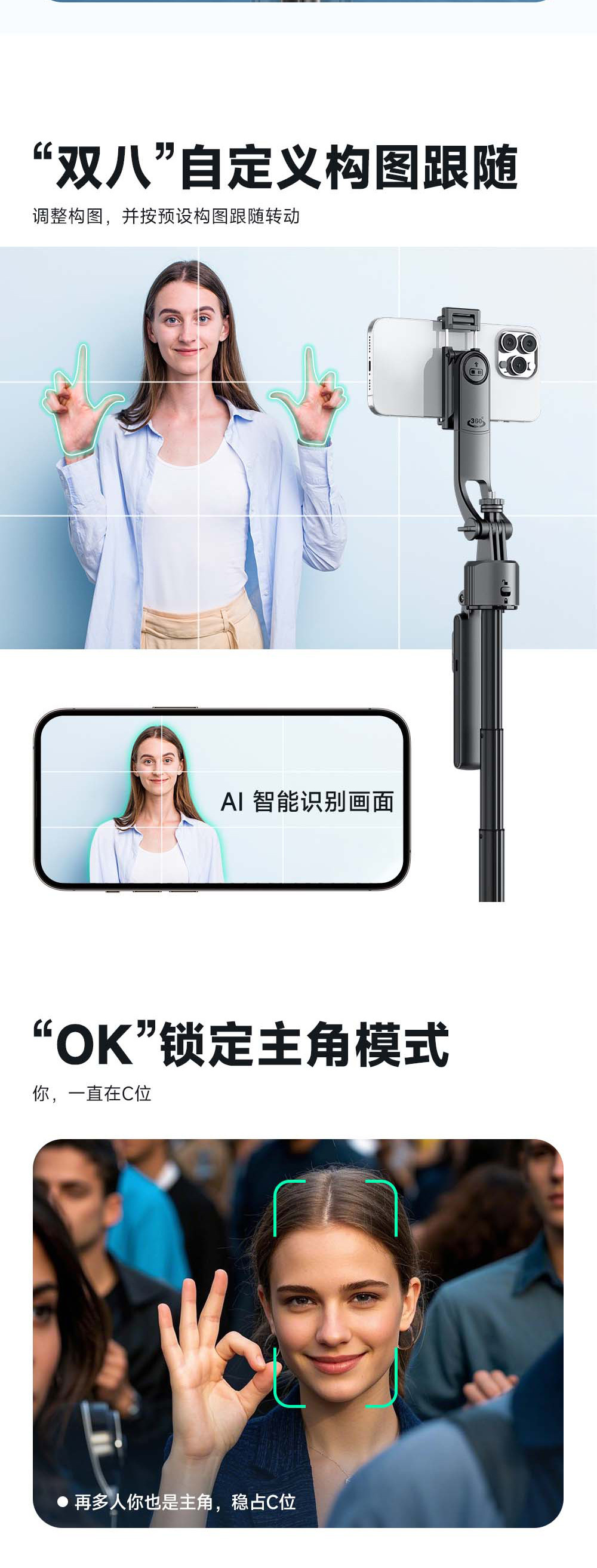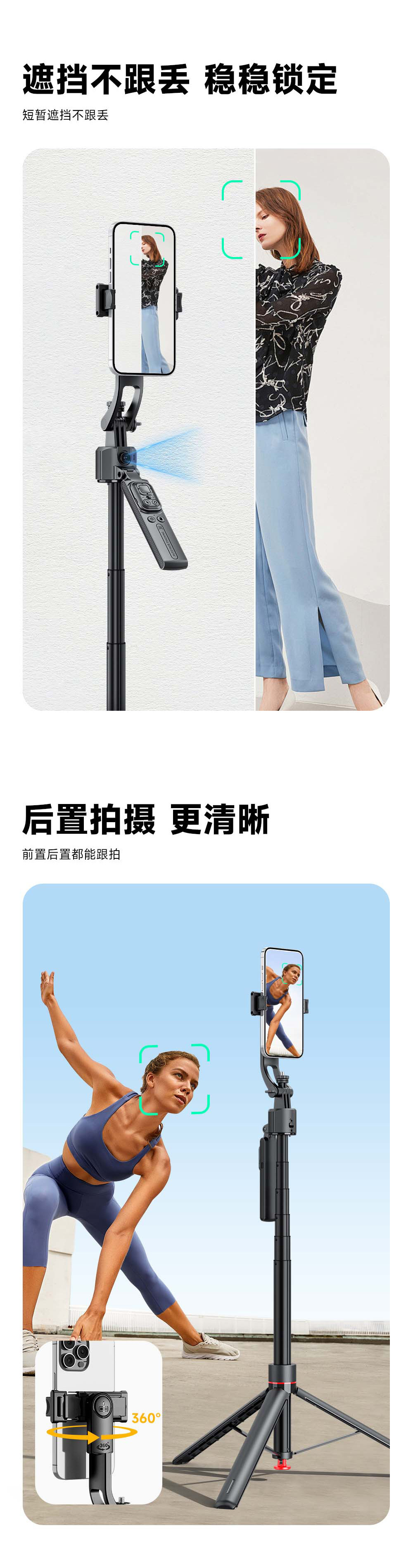 새로운 국경 간 TT07 올인원 점프 스틱 1.74m AI 얼굴 추적 균형 안정적인 삼각대 셀카 스틱