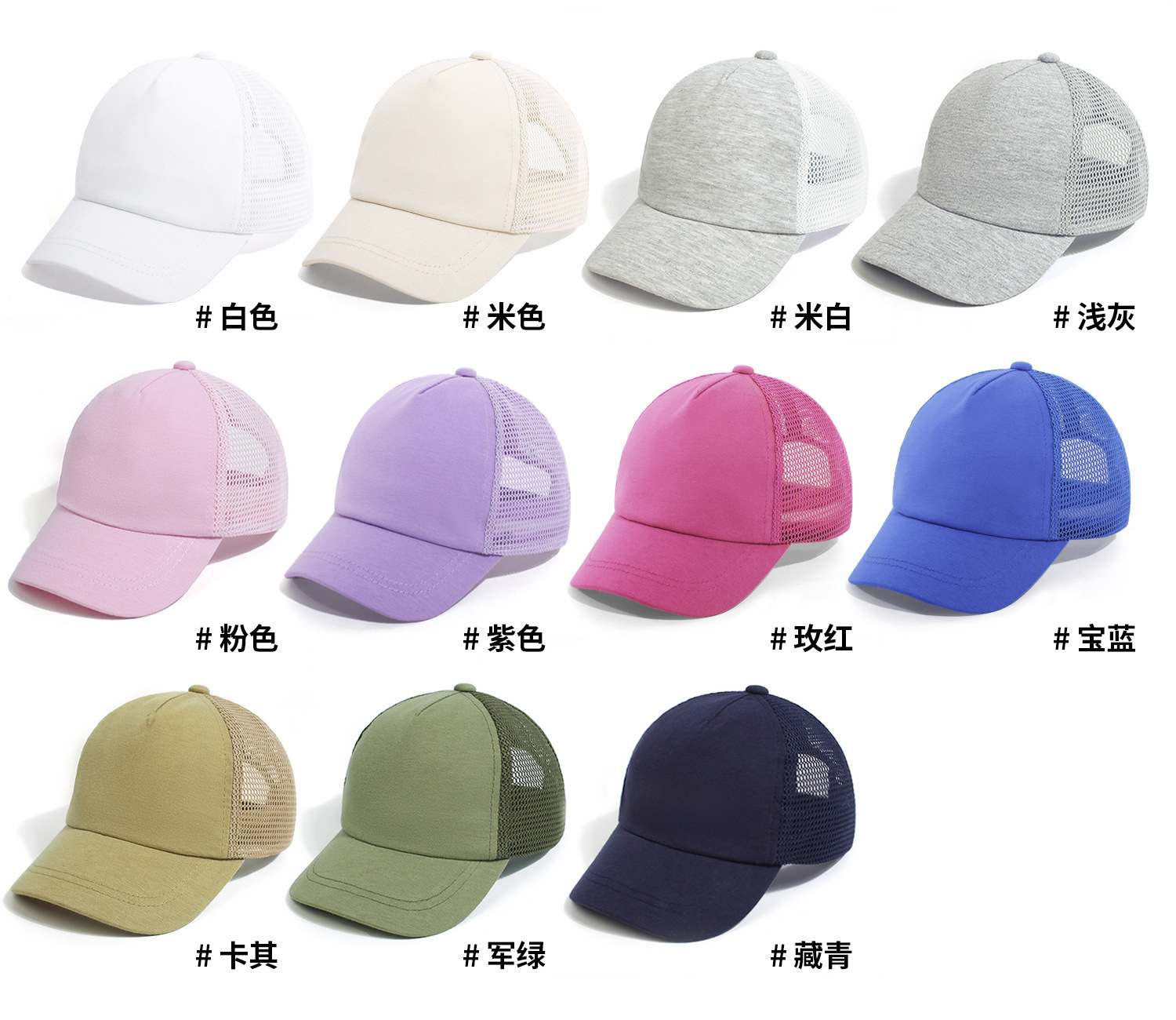 어린이 야구 모자 여름 새 스타일 솔리드 컬러 태양 보호 모자 소년과 소녀를위한 야외 캐주얼 피크 캡 메쉬 모자