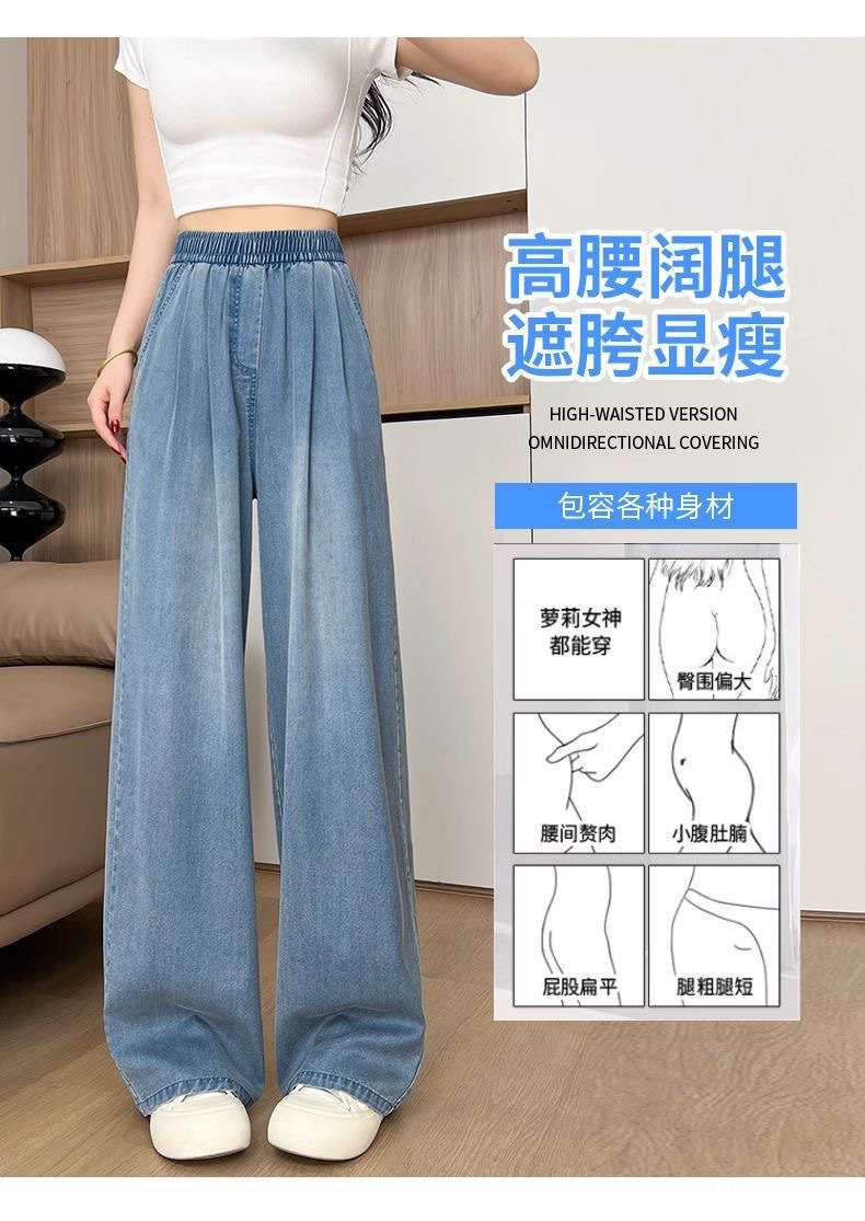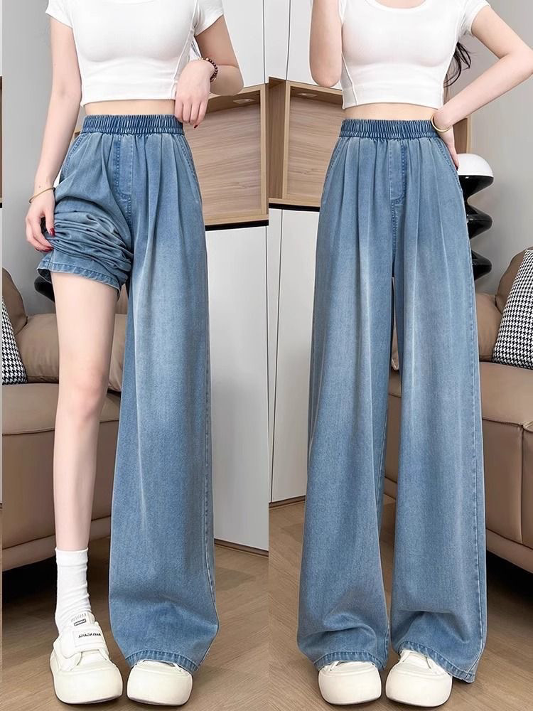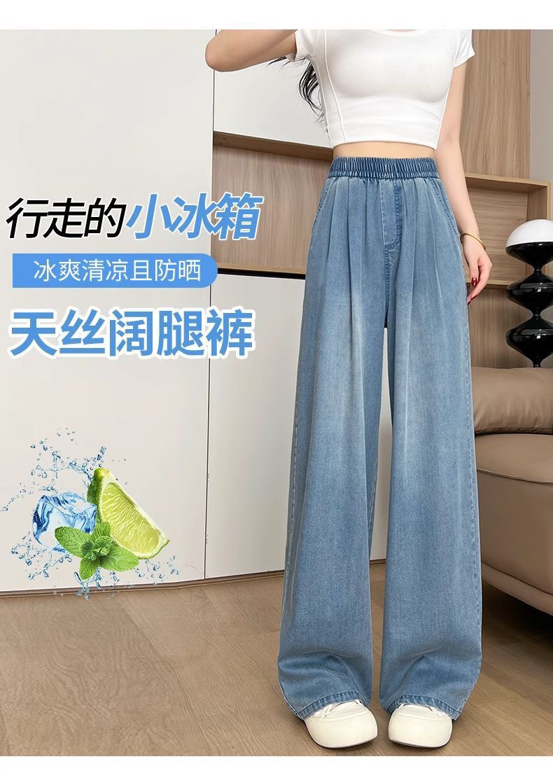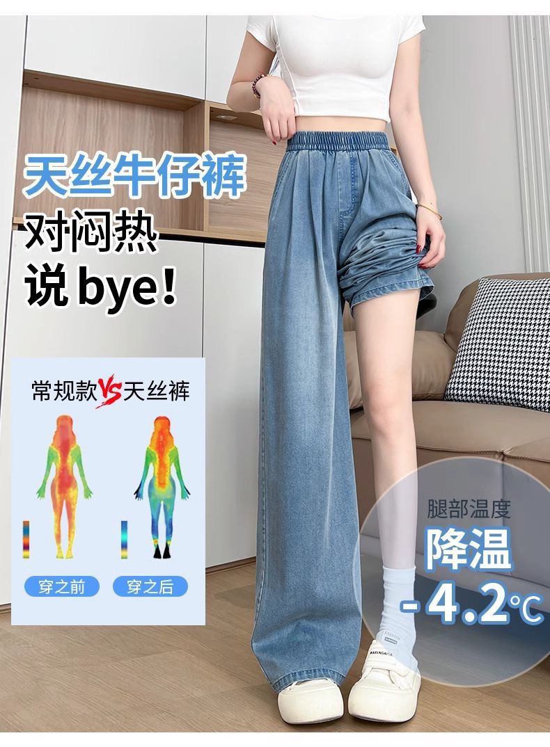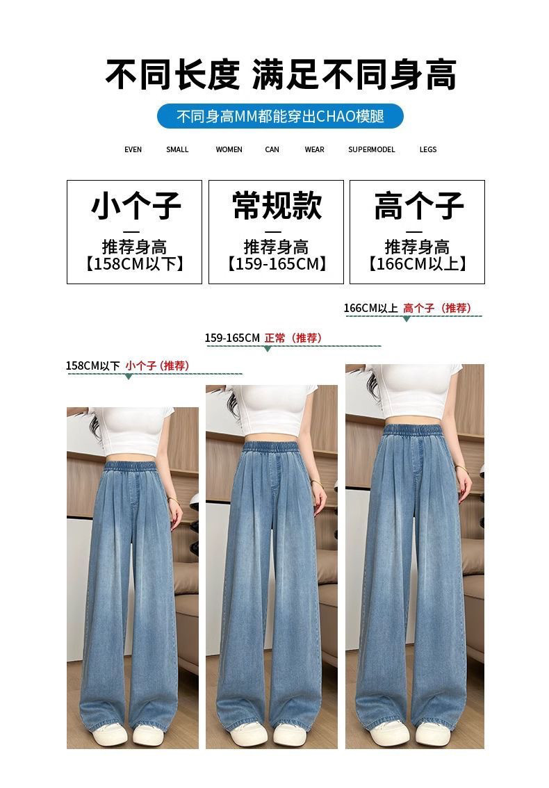 여성용 텐셀 청바지 여름 얇은 하이 웨이스트 와이드 레그 루즈 스몰 네로우 버전 아이스 실크 스트레이트 팬츠스토어 가기