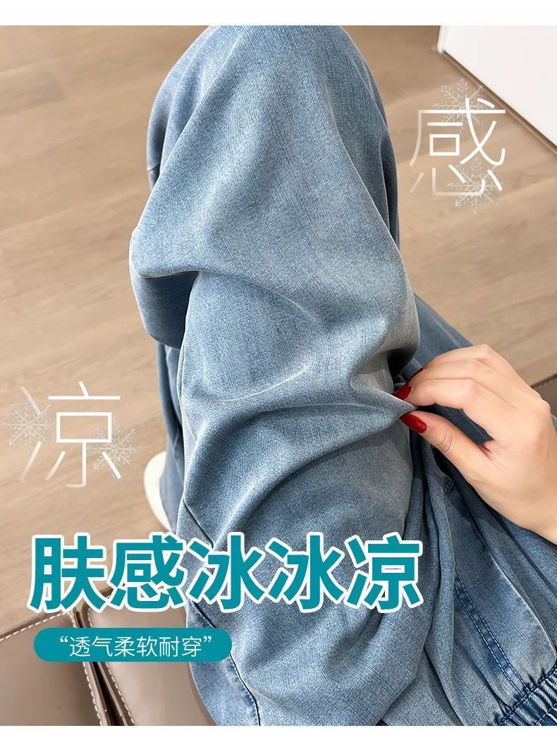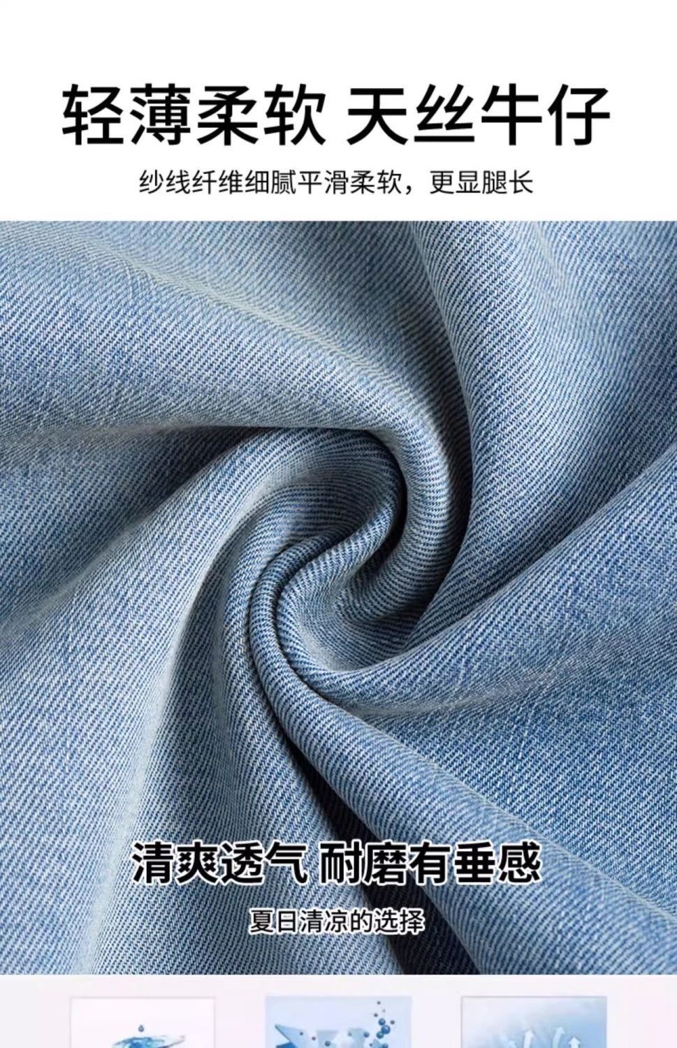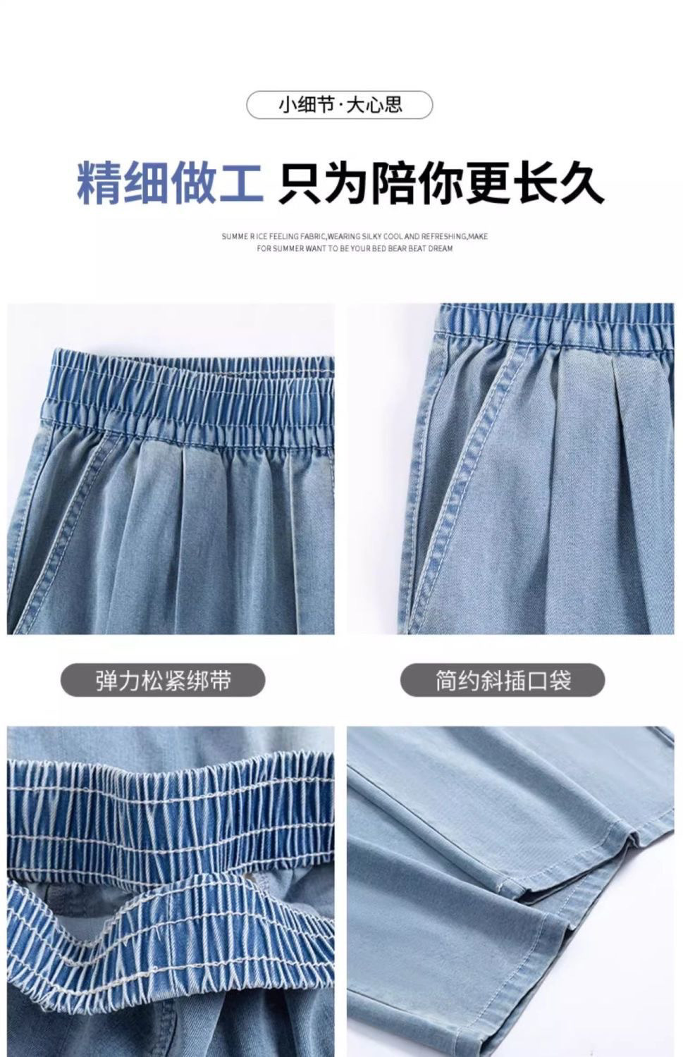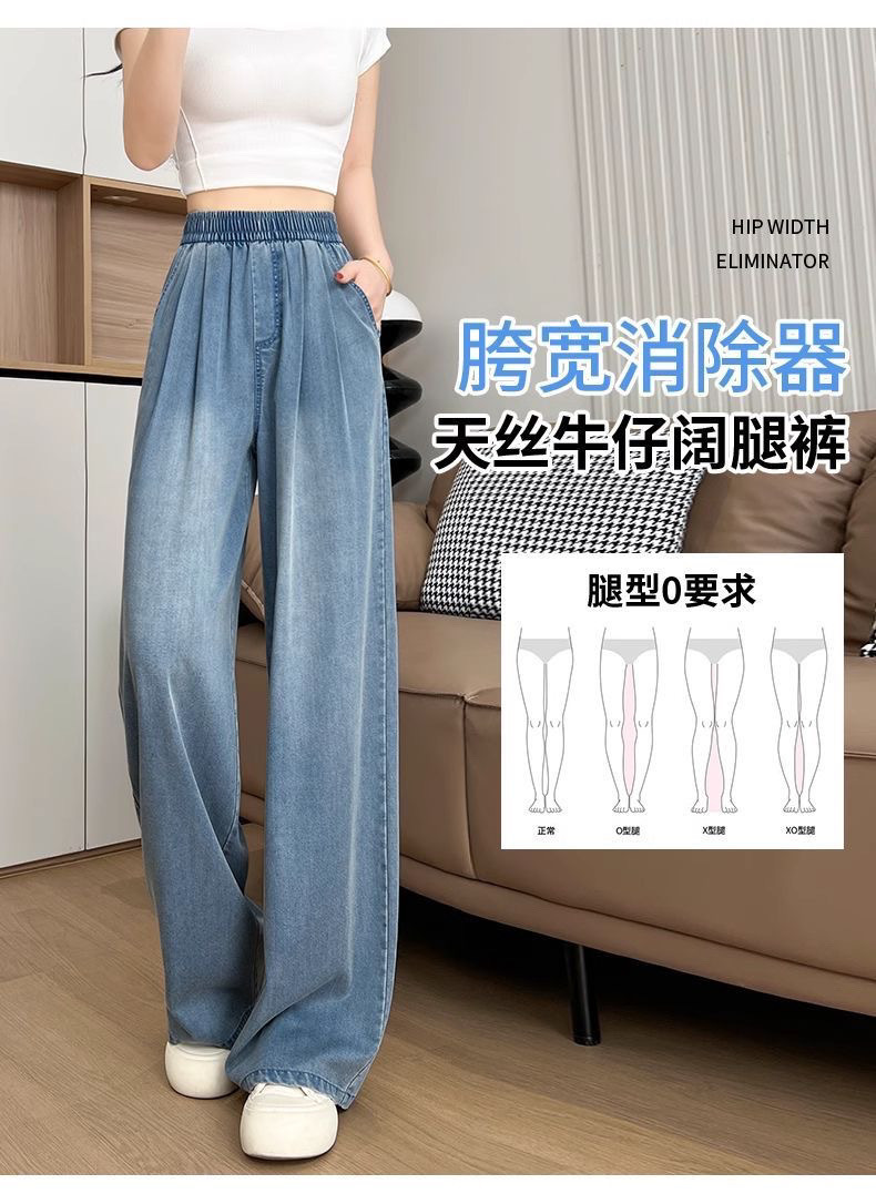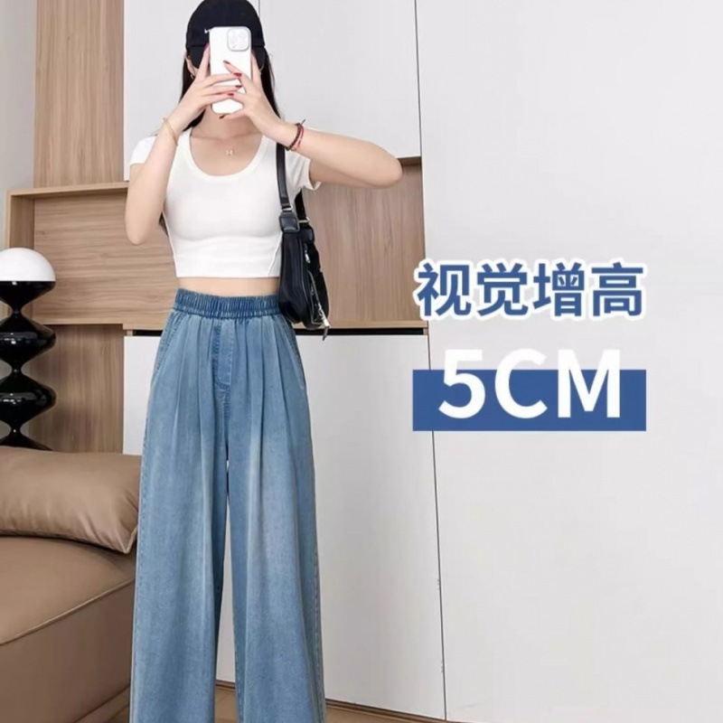 여성용 텐셀 청바지 여름 얇은 하이 웨이스트 와이드 레그 루즈 스몰 네로우 버전 아이스 실크 스트레이트 팬츠스토어 가기