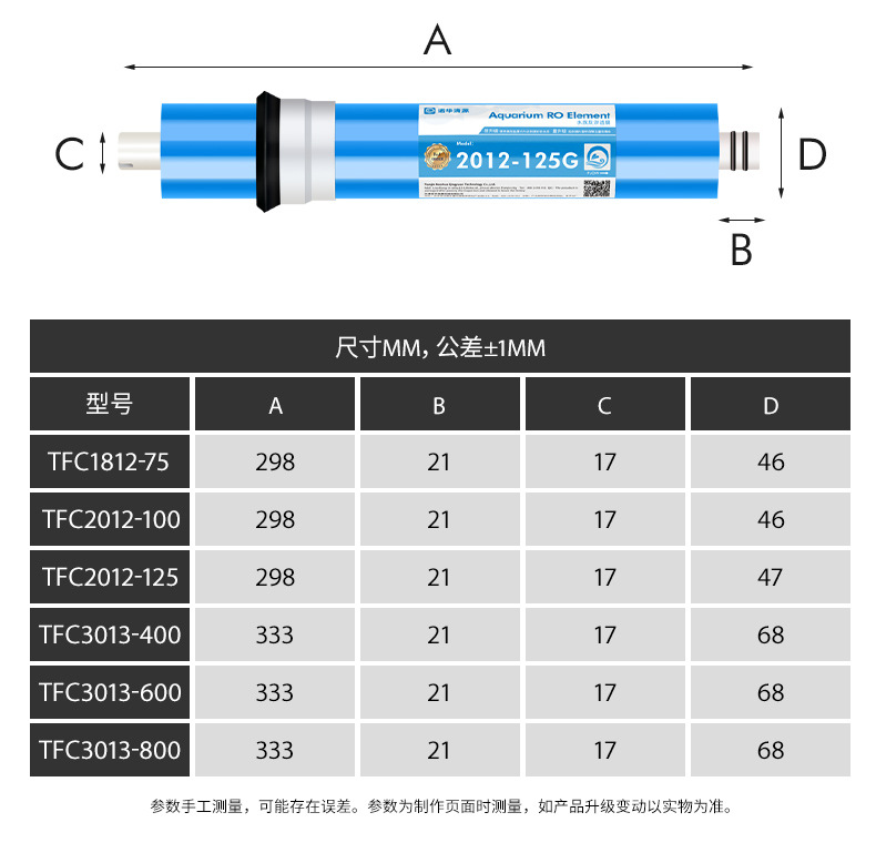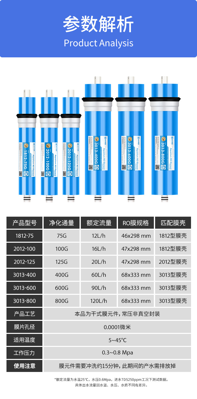 Novartis Qingyuan 정수기 RO 멤브레인 필터 요소 75G-800G 범용 역삼투 순수 기계 가정용 직접 마시는 멀티 사양