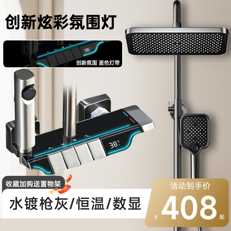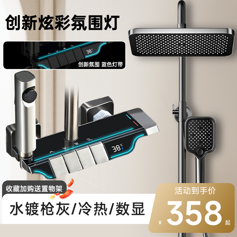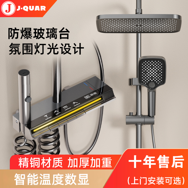 독일 Junquan 샤워 세트 홈 욕실 항온 디지털 디스플레이 레인 부스터 노즐 건 그레이 샤워기스토어 가기
