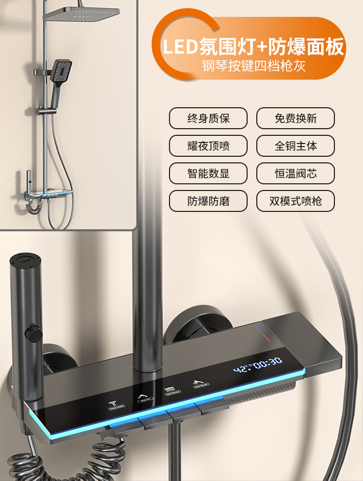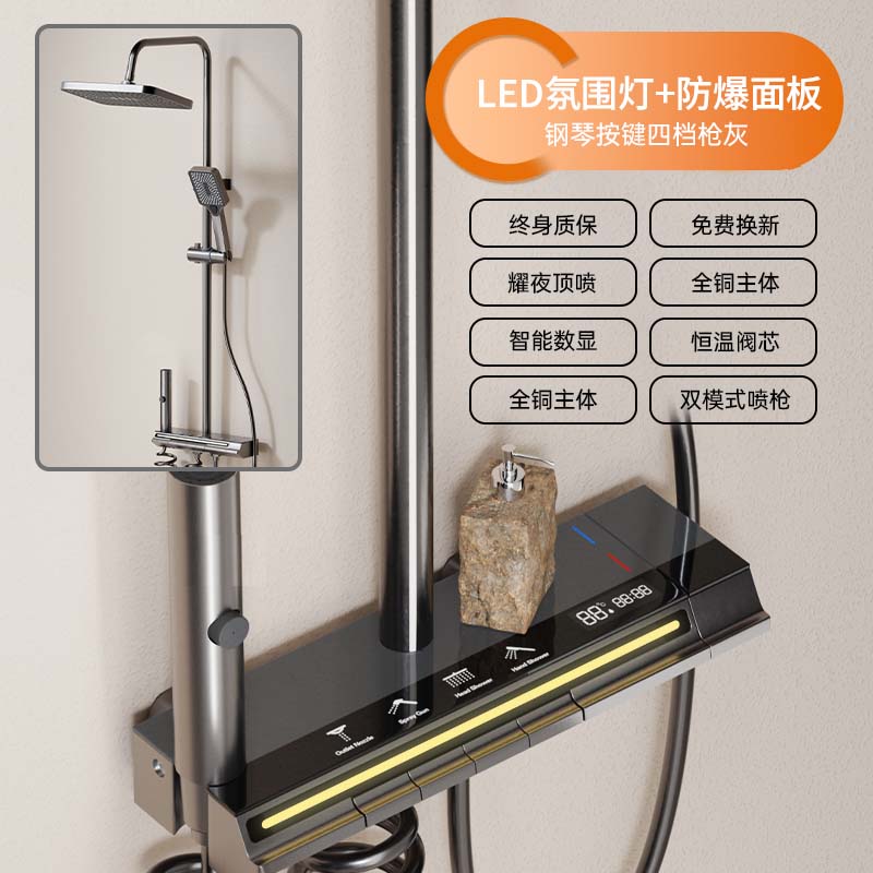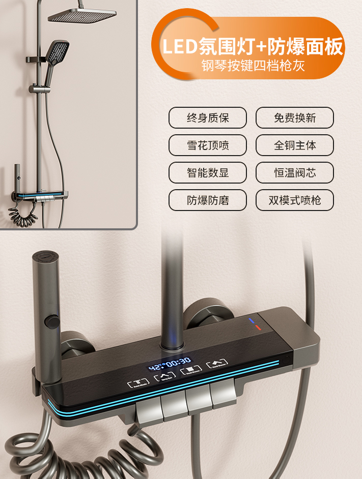 독일 Junquan 샤워 세트 홈 욕실 항온 디지털 디스플레이 레인 부스터 노즐 건 그레이 샤워기