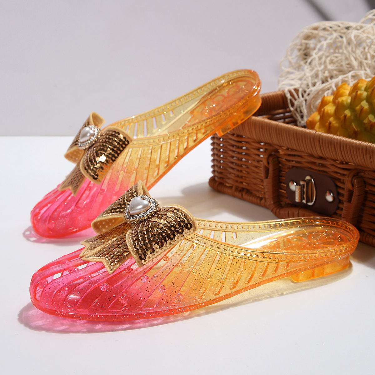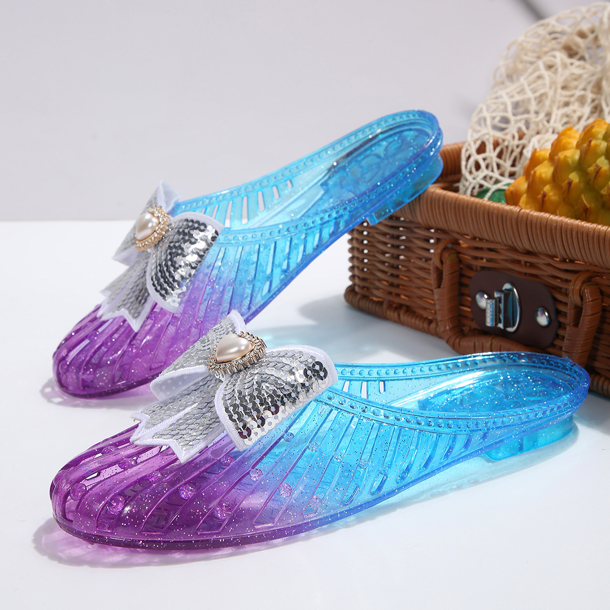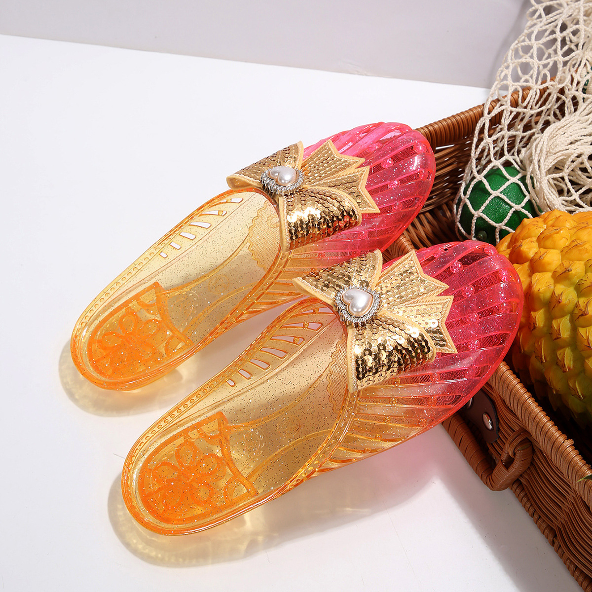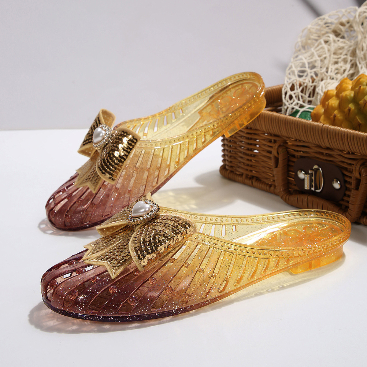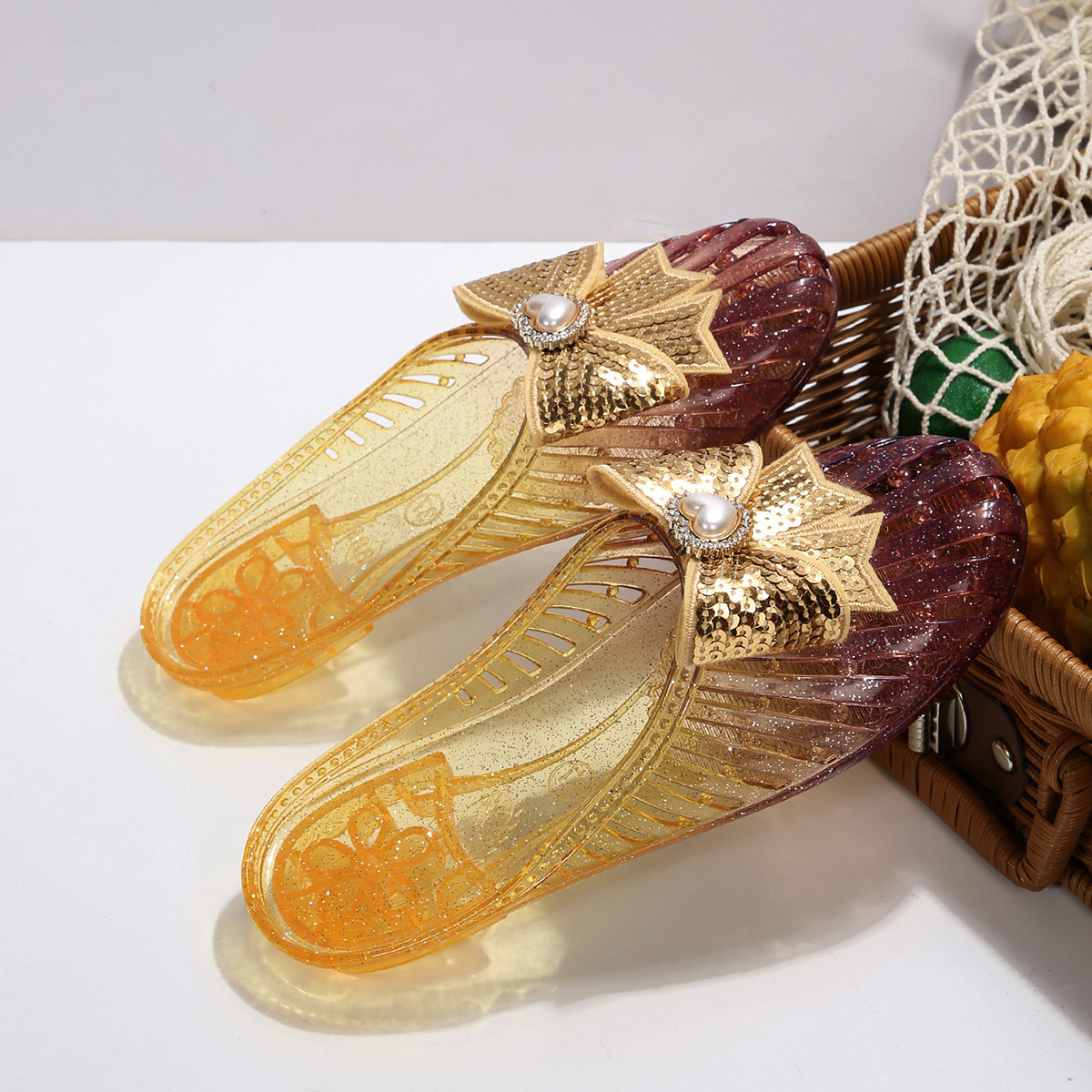 2025 새로운 젤리 신발 얕은 입 슬리퍼 크리스탈 신발 하이 엔드 복고풍 샌들 부드러운 바닥 중공 통기성 신발 여성을위한
