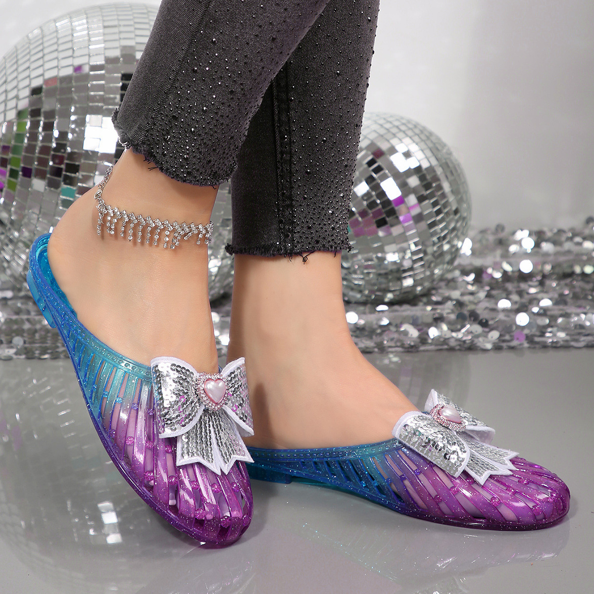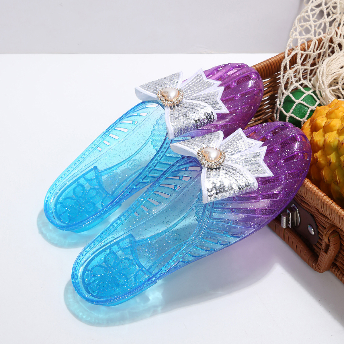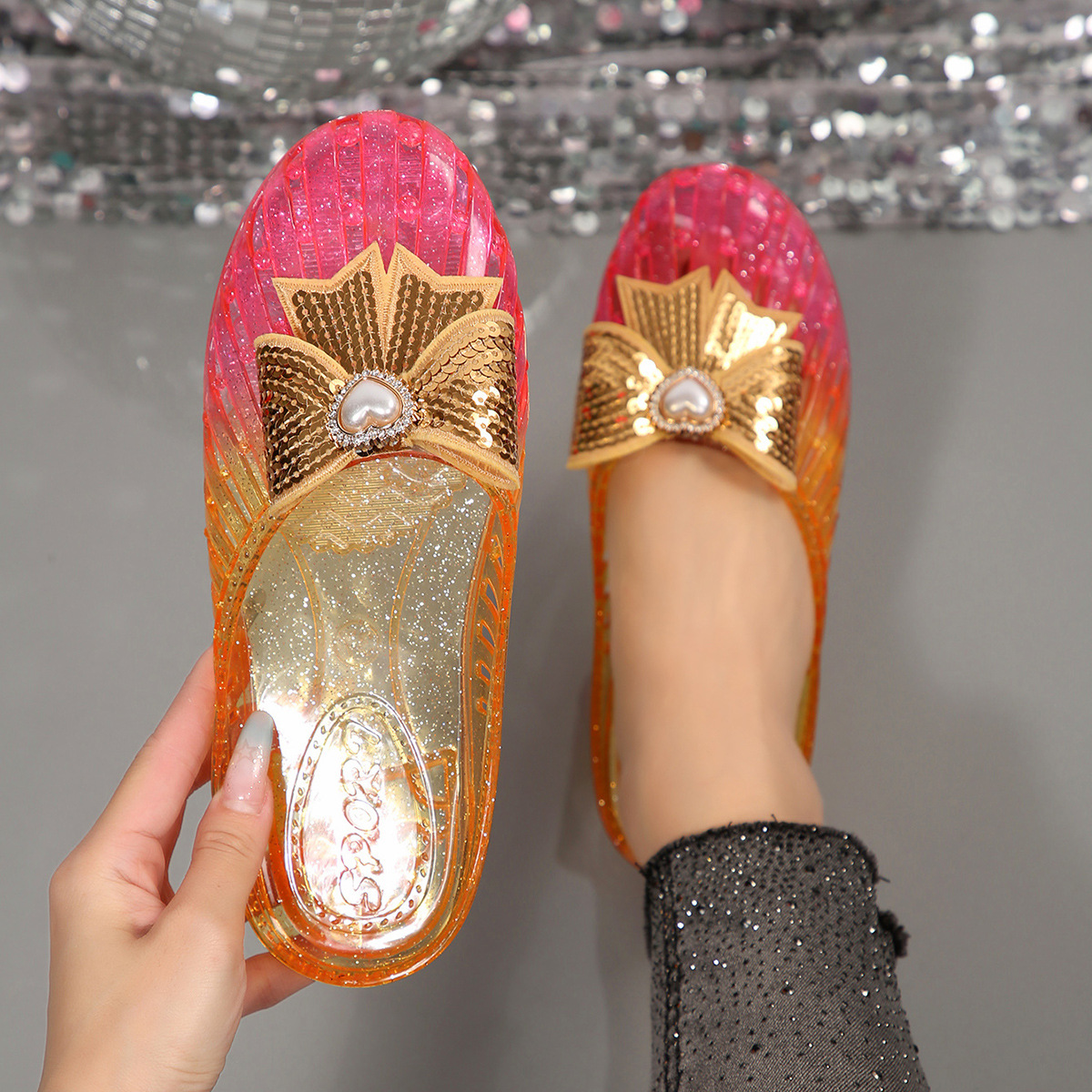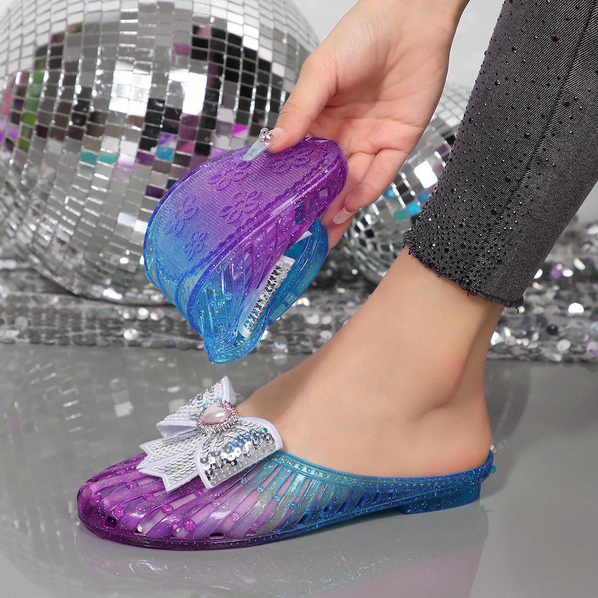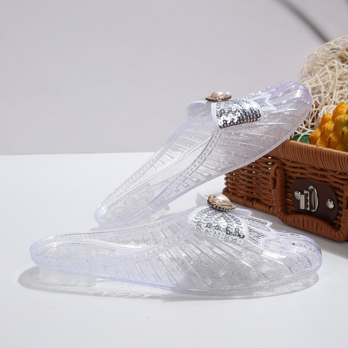 2025 새로운 젤리 신발 얕은 입 슬리퍼 크리스탈 신발 하이 엔드 복고풍 샌들 부드러운 바닥 중공 통기성 신발 여성을위한
