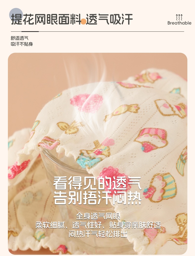 면 메쉬 아동 속옷, 통기성 삼각 반바지, 만화 귀여운 소녀 팬티, PP가 없는 순면