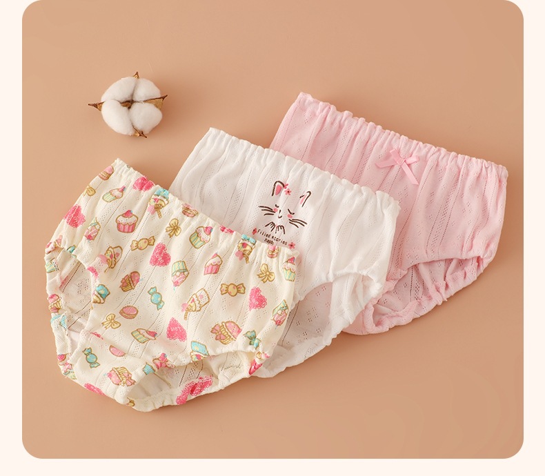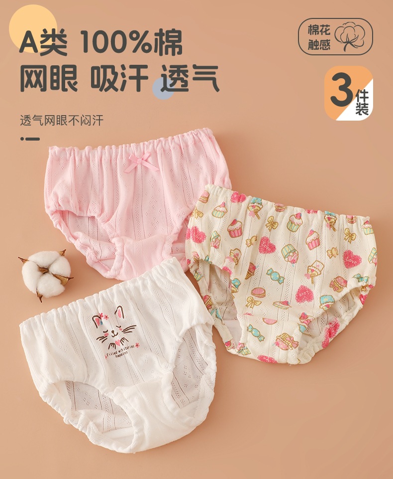 면 메쉬 아동 속옷, 통기성 삼각 반바지, 만화 귀여운 소녀 팬티, PP가 없는 순면스토어 가기