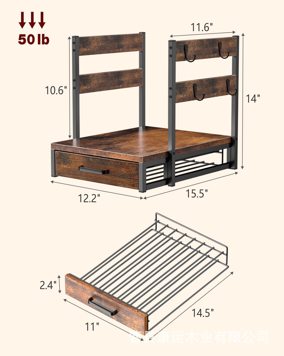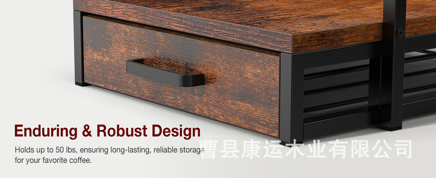 단단한 나무 수납 선반, 철제 및 목재 결합 수납 선반, 바 커피 머신 수납 선반, 다기능 찻잔 수납 선반