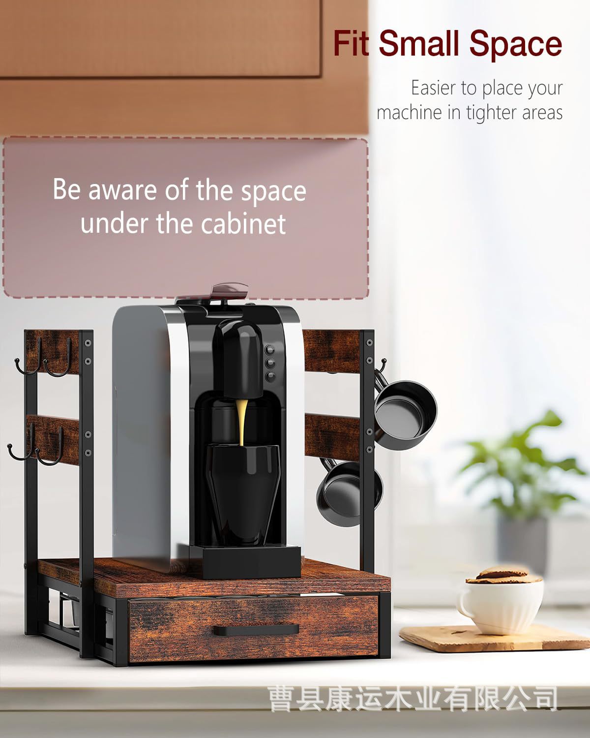 단단한 나무 수납 선반, 철제 및 목재 결합 수납 선반, 바 커피 머신 수납 선반, 다기능 찻잔 수납 선반스토어 가기