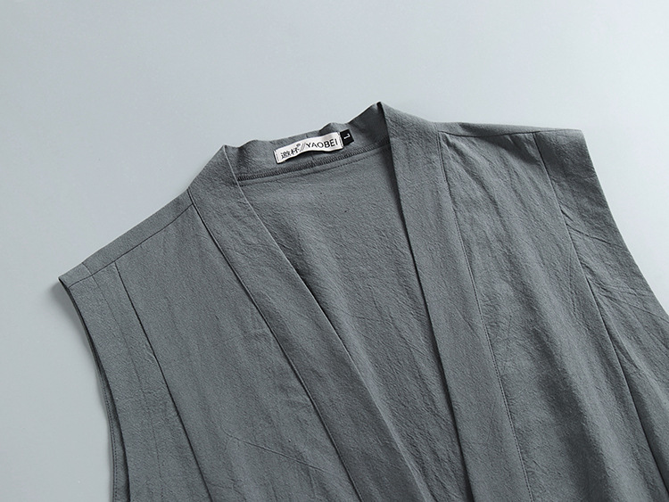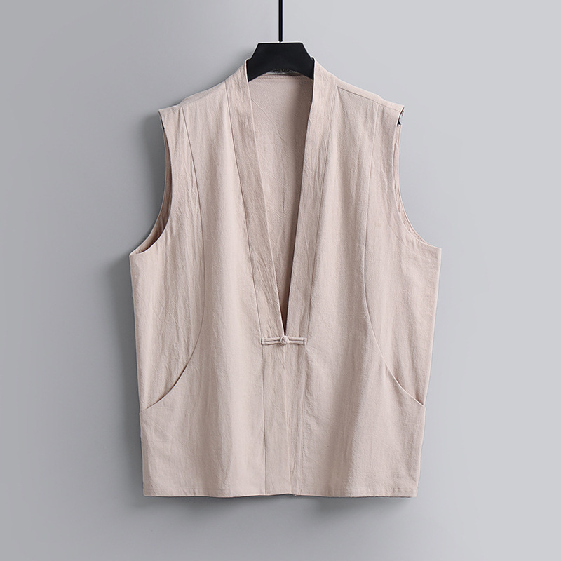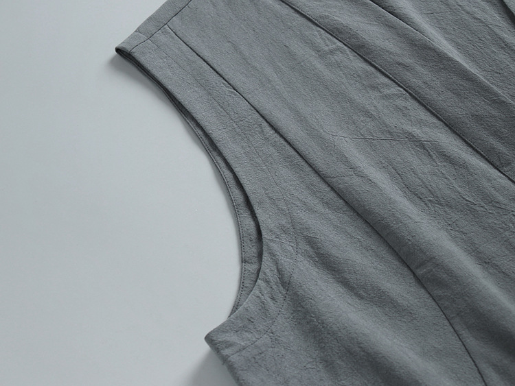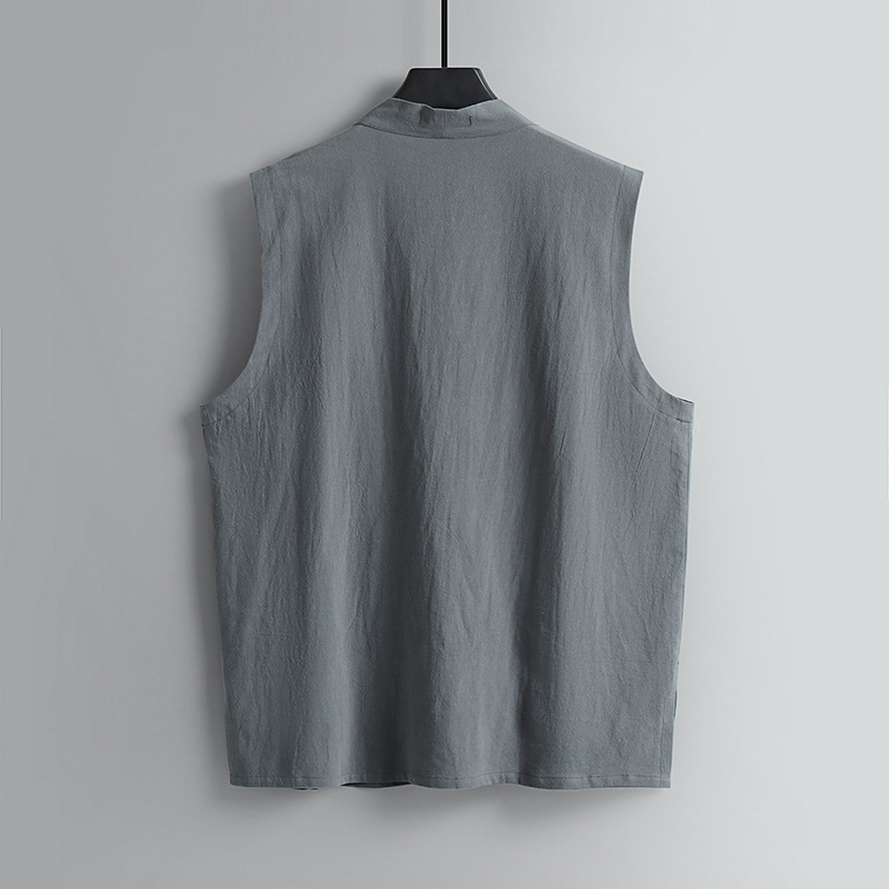 여름 얇은 린넨 민소매 조끼 남자 중국 스타일 코튼과 린넨 버튼 조끼 복고풍 중국 스타일 당나라 정장 느슨한 양복 조끼