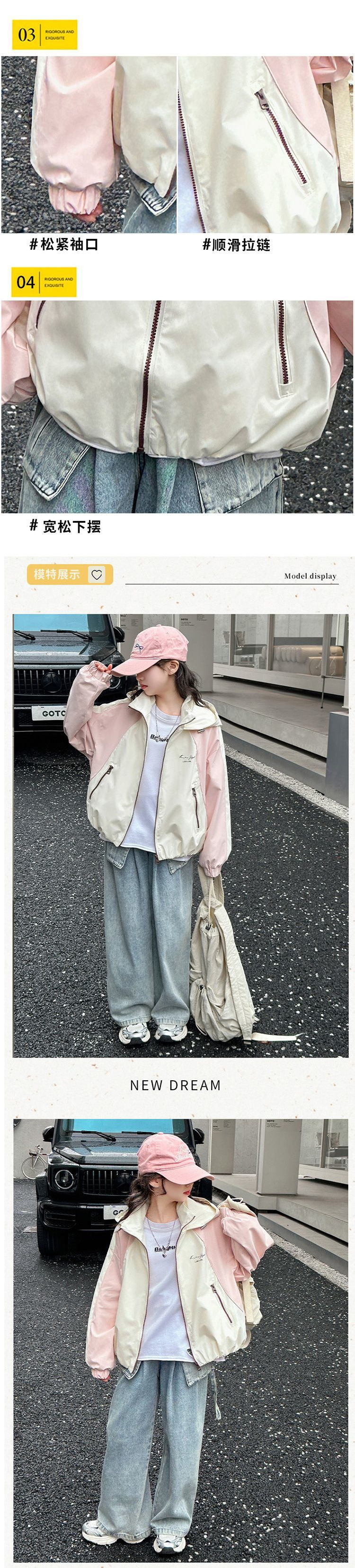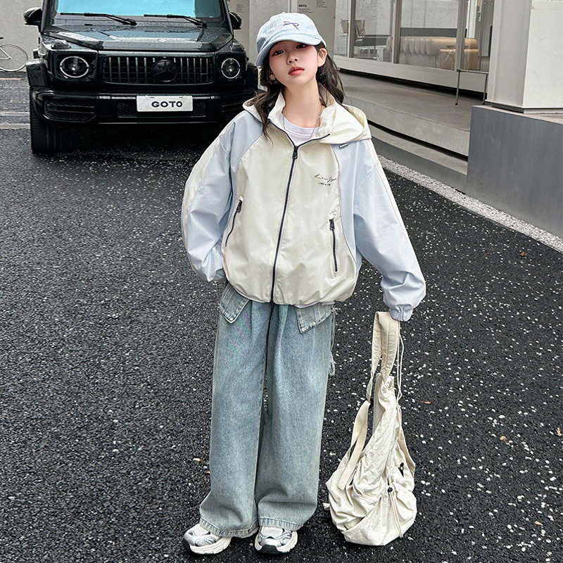 여아 2025 봄, 가을 재킷 새로운 스타일 아동용 봄 후드 재킷 캐주얼 중대형 아동 재킷상의