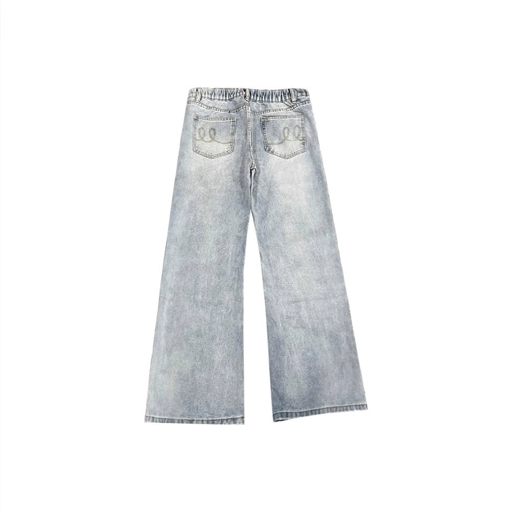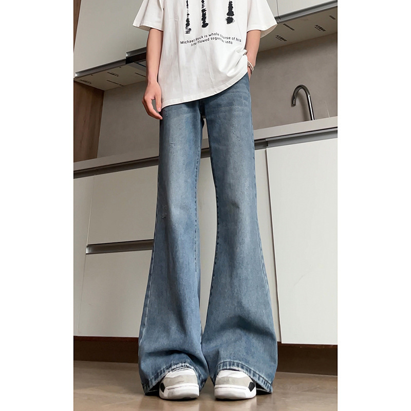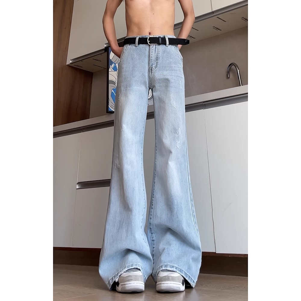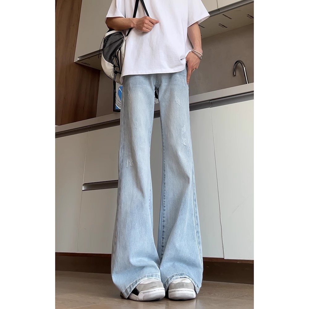남성용 찢어진 청바지 여름 얇은 와이드 레그 스트레이트 아메리칸 바이브 팬츠 키 큰 사람들을 위한 확장 버전 세이버 부츠컷 팬츠스토어 가기