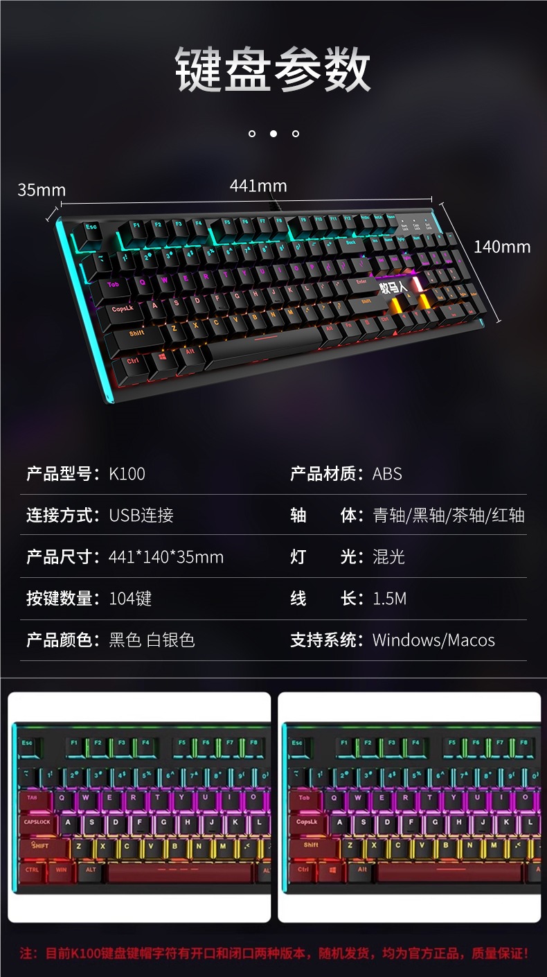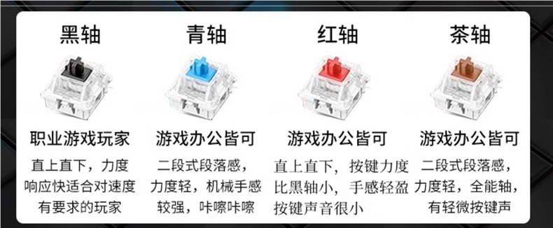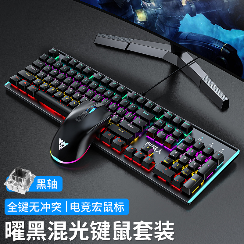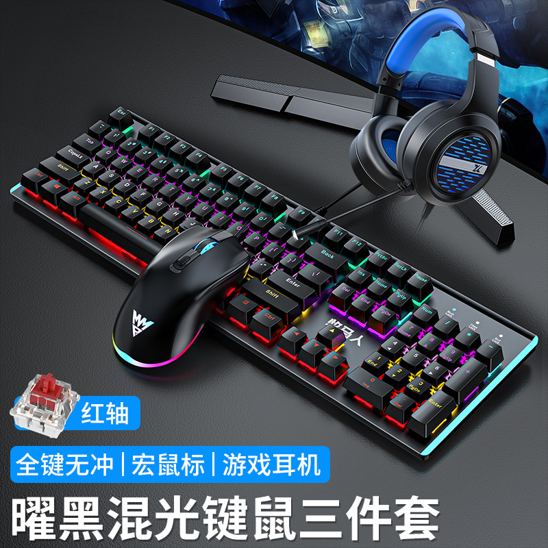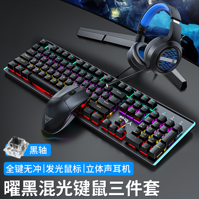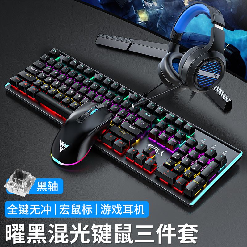 • E-스포츠 트루 메카니컬 샤프트 바디 - 흑요석 블랙 혼합 조명 [3종 세트 - 블랙 샤프트] + M2 야광 마우스 + 스테레오 헤드셋 - 없음 - 104 키 - 표준 구성