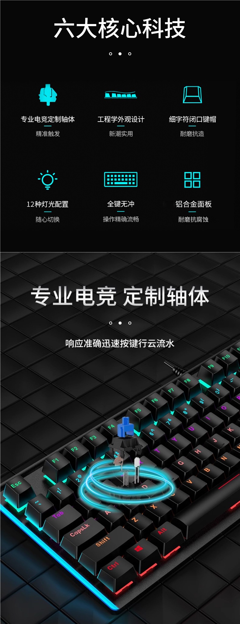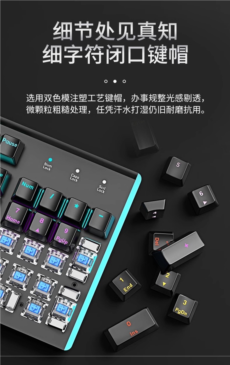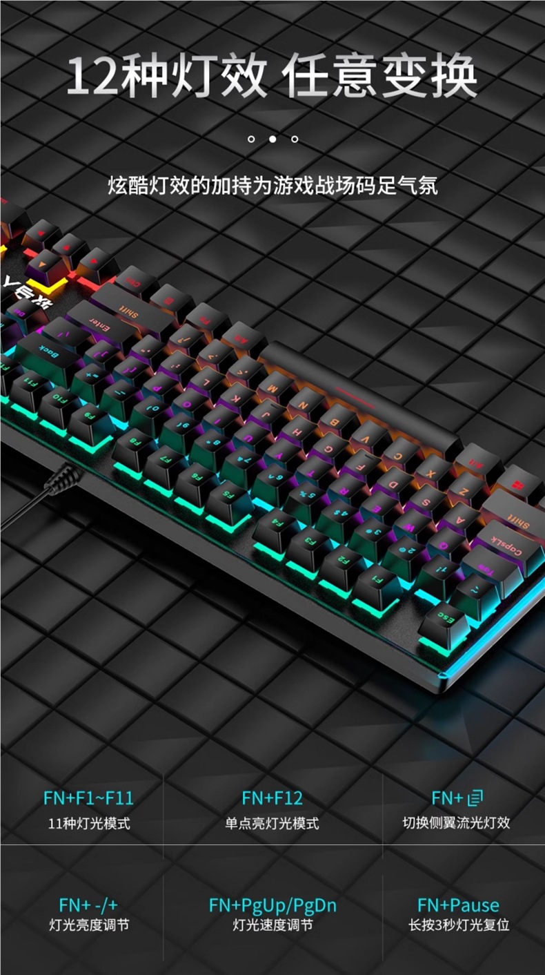 • E-스포츠 트루 메카니컬 샤프트 바디 - 흑요석 블랙 혼합 조명 [3종 세트 - 블랙 샤프트] + M2 야광 마우스 + 스테레오 헤드셋 - 없음 - 104 키 - 표준 구성