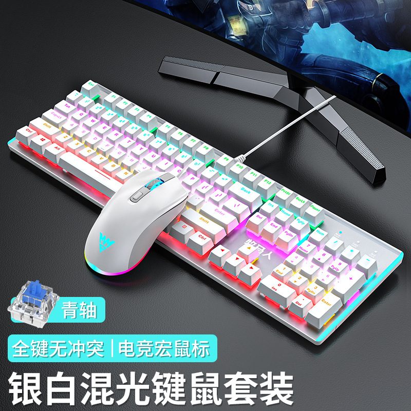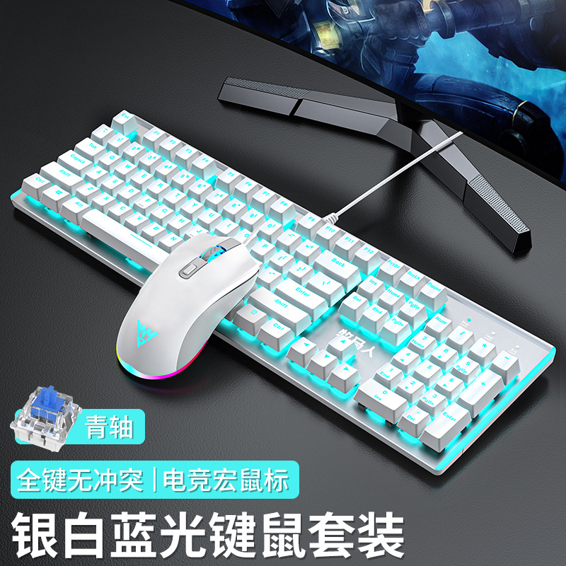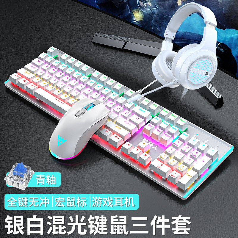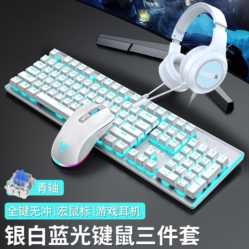 • E-스포츠 트루 메카니컬 샤프트 - 실버 화이트 블루 라이트 [3종 세트 - 그린 샤프트] + M1 E-스포츠 매크로 마우스 + 게이밍 헤드셋 - 없음 - 104키 - 표준 구성