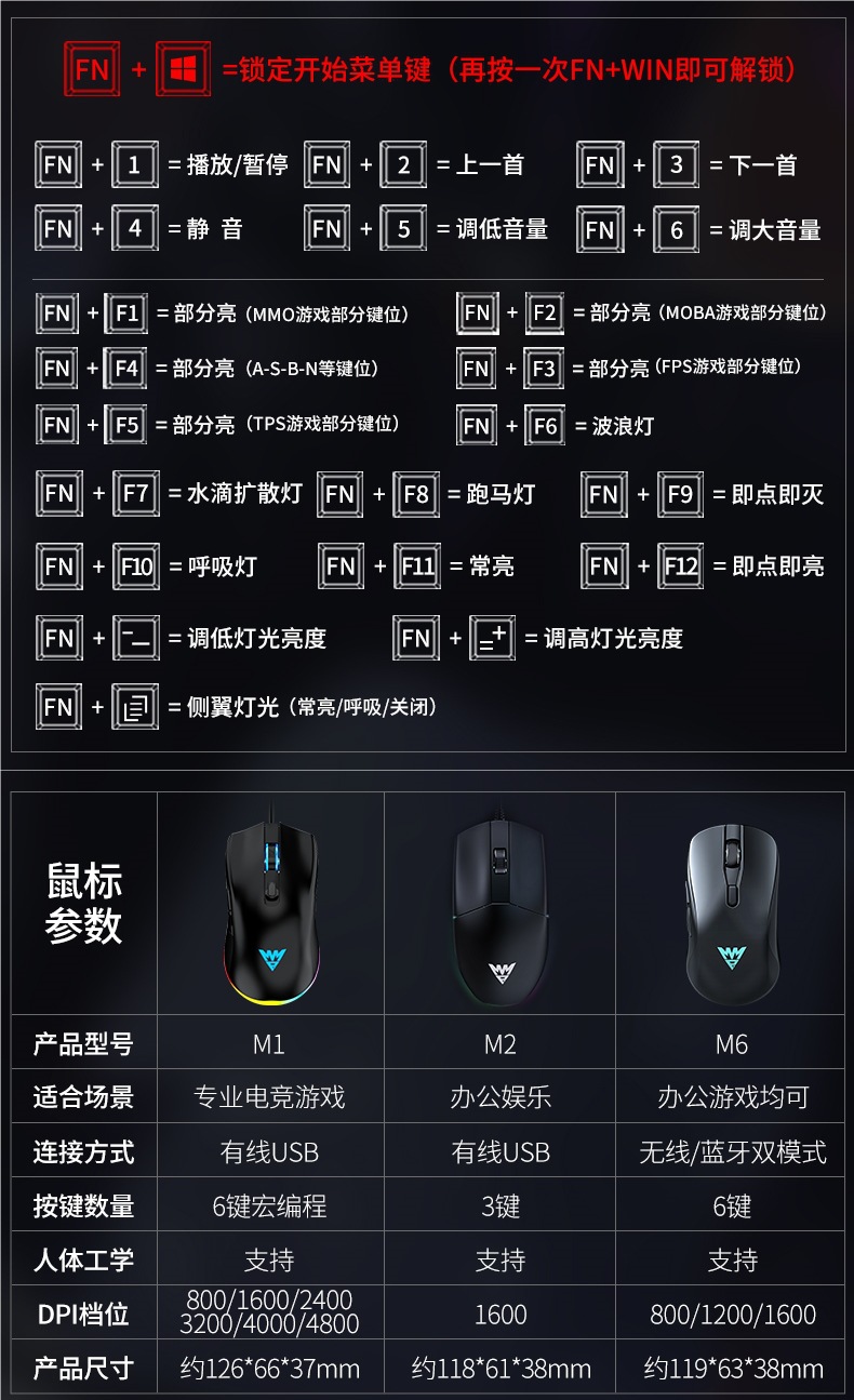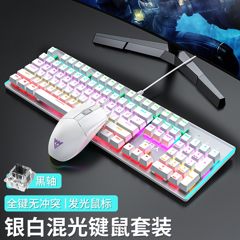 • E-스포츠 트루 메카니컬 샤프트 - 실버 화이트 혼합 조명 [2피스 세트 - 블랙 샤프트] + M2 야광 마우스 - 없음 - 104키 - 표준 구성