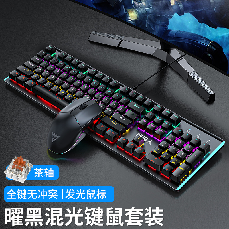 • E-스포츠 트루 메카니컬 샤프트 바디 - 흑요석 블랙 혼합 조명 [2피스 세트 - 브라운 샤프트] + M2 야광 마우스 - No - 104 키 - 표준 구성