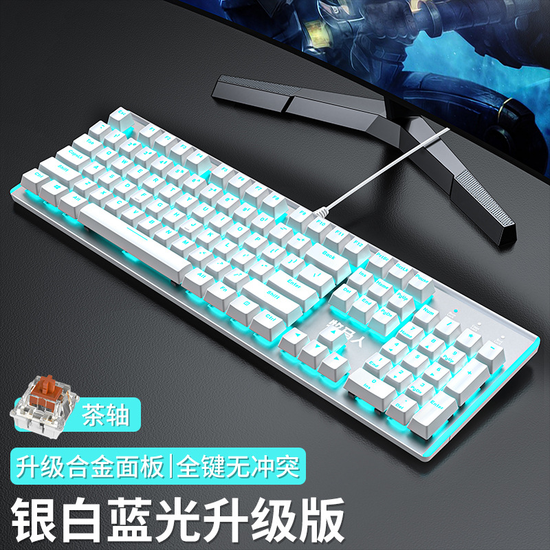 • E-스포츠 트루 메카니컬 샤프트 - 실버 화이트 블루 라이트 [2피스 세트 - 브라운 샤프트] + M2 야광 마우스 - 없음 - 104 키 - 표준