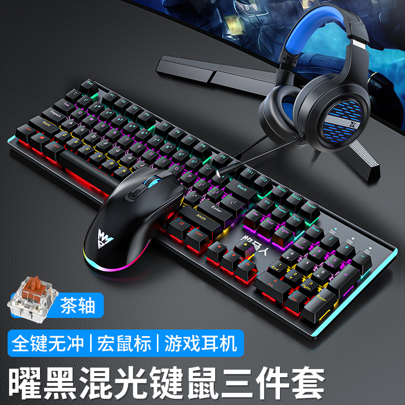 • E-스포츠 트루 메카니컬 샤프트 바디 - 흑요석 블랙 혼합 조명 [3종 세트 - 브라운 샤프트] + M2 야광 마우스 + 스테레오 헤드셋 - 없음 - 104 키 - 표준 구성