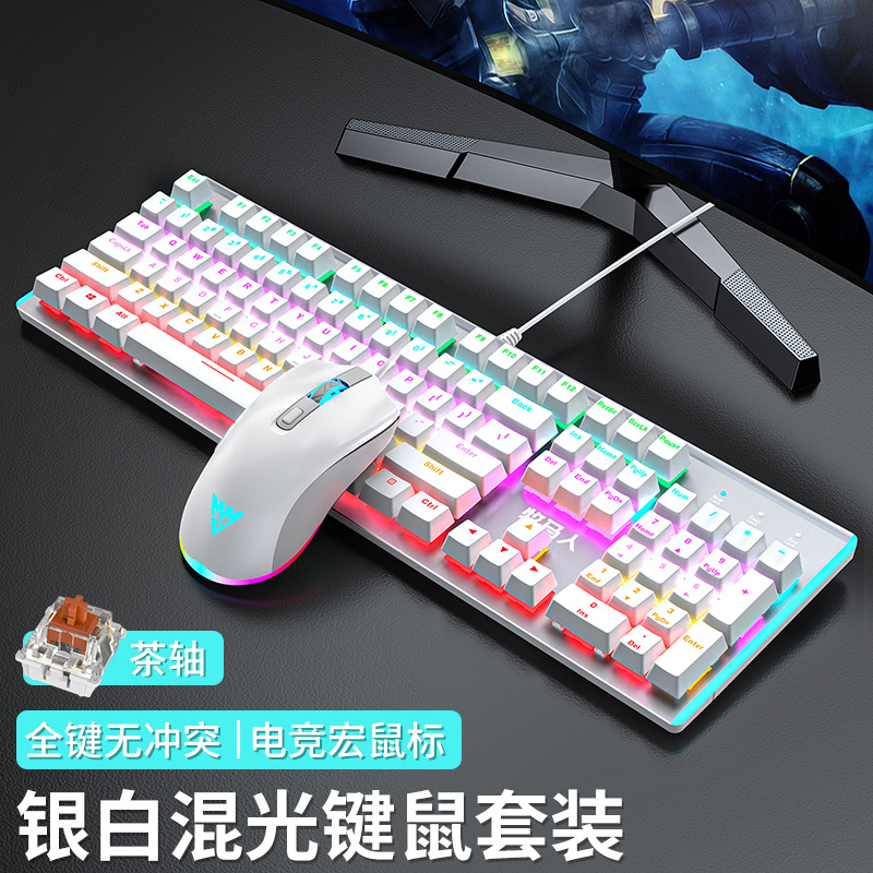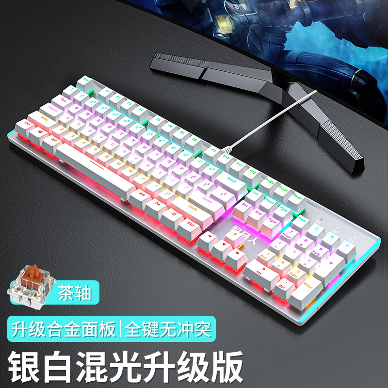 • E-스포츠 트루 메카니컬 샤프트 - 실버 화이트 혼합 조명 [2피스 세트 - 브라운 샤프트] + M2 야광 마우스 - 없음 - 104키 - 표준 구성