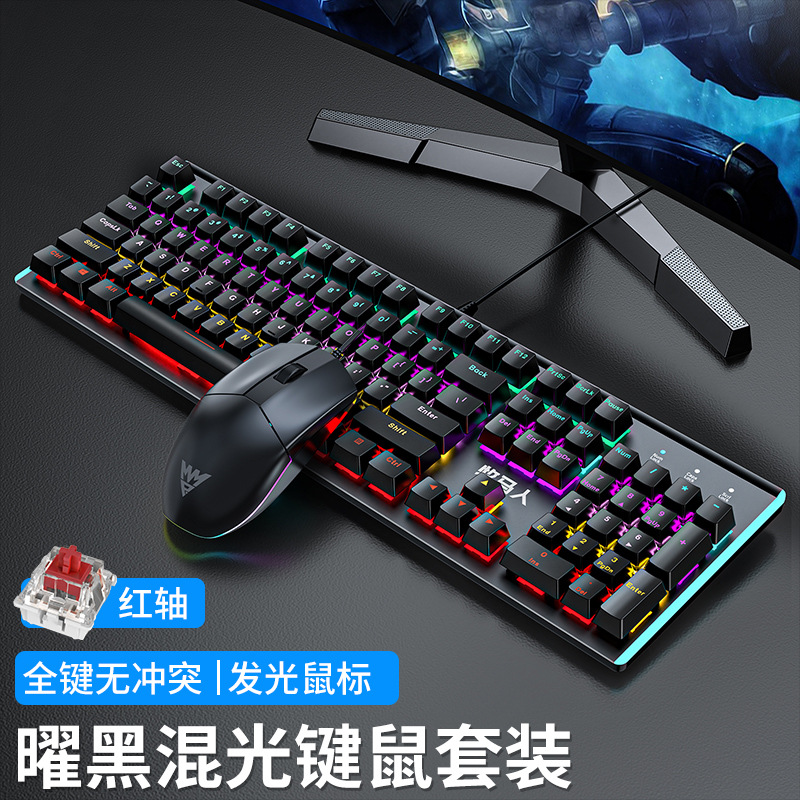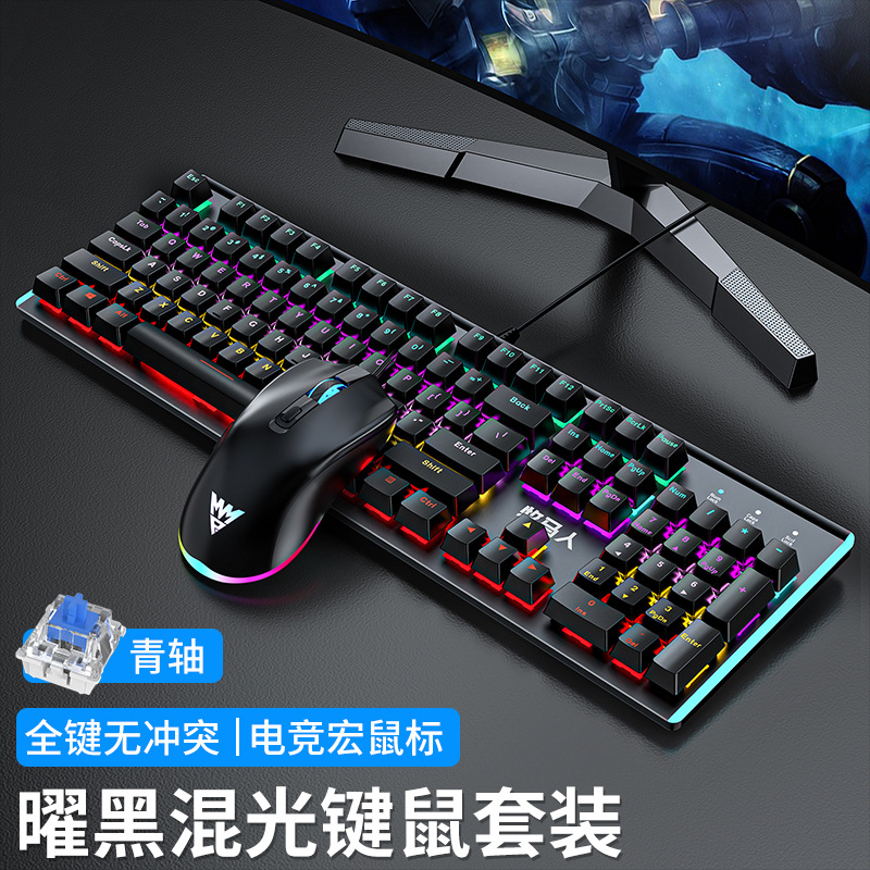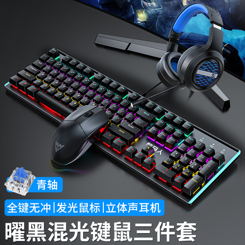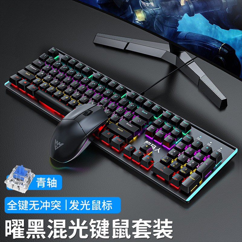 Wrangler K100 실제 기계식 키보드 및 마우스 세트 유선 e-스포츠 게임 컴퓨터 키보드 및 마우스 헤드셋 녹색 축스토어 가기