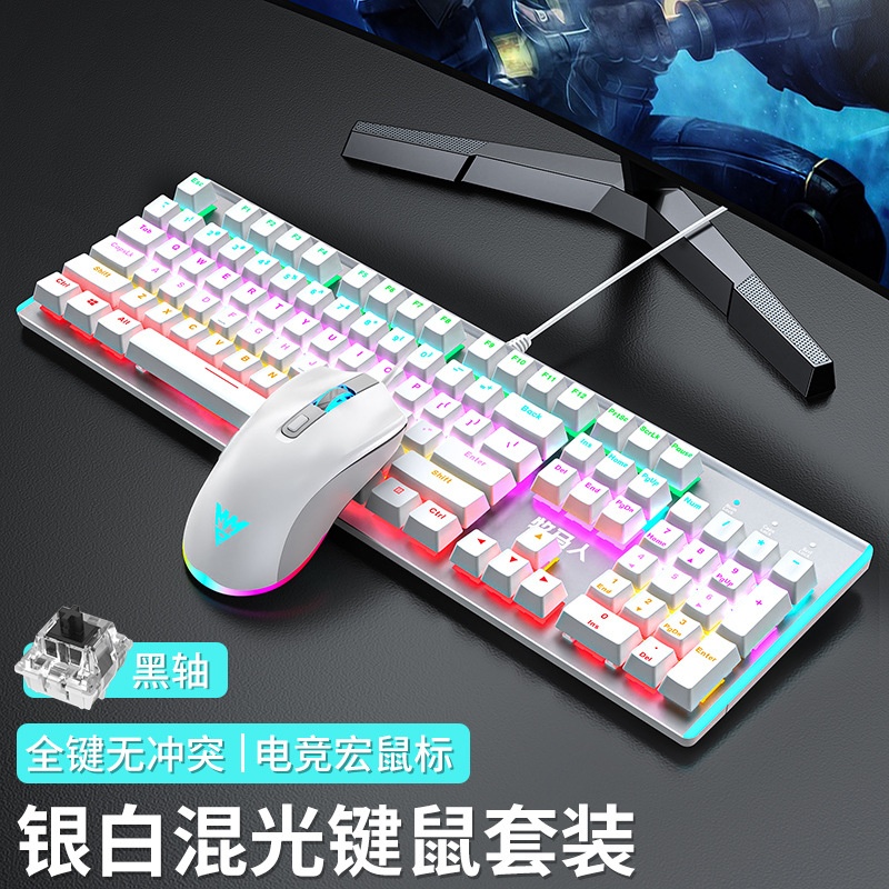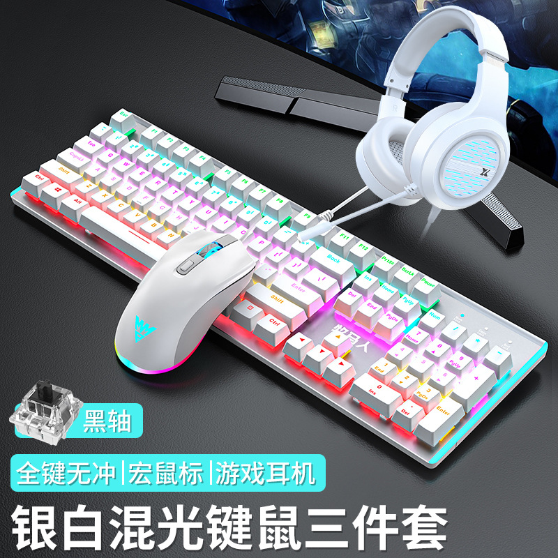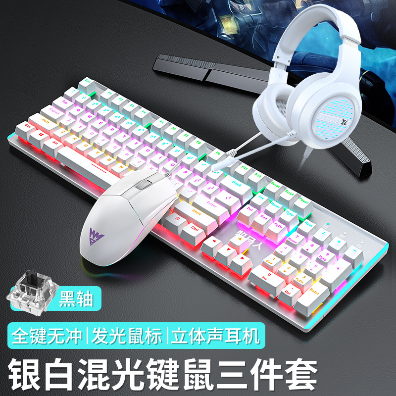 • E-스포츠 트루 메카니컬 샤프트 - 실버 화이트 혼합 조명 [3종 세트 - 블랙 샤프트] + M1 E-스포츠 매크로 마우스 + 게이밍 헤드셋 - 없음 - 104키 - 표준 구성