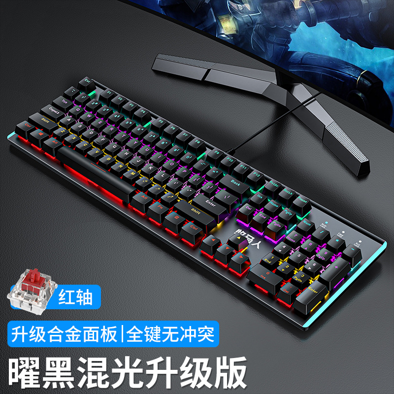 • E-스포츠 트루 메카니컬 샤프트 바디 - 흑요석 블랙 혼합 조명 [3종 세트 - 레드 샤프트] + M2 야광 마우스 + 스테레오 헤드셋 - No - 104 키 - 표준 구성