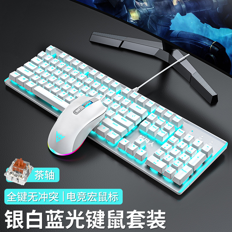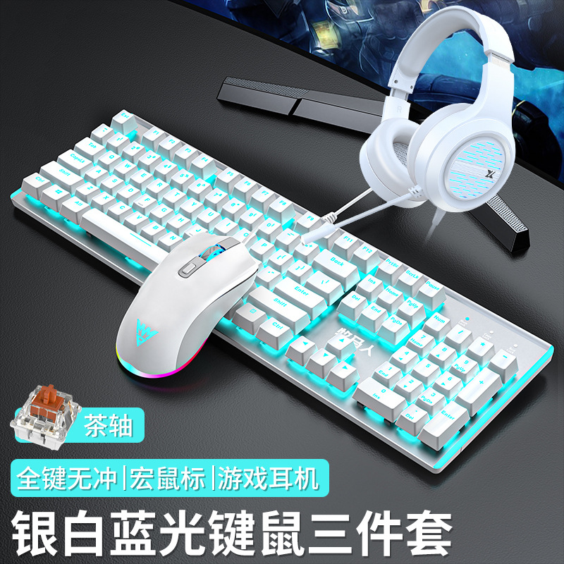 • E-스포츠 트루 메카니컬 샤프트 - 실버 화이트 블루 라이트 [3종 세트 - 브라운 샤프트] + M1 E-스포츠 매크로 마우스 + 게이밍 헤드셋 - No - 104키 - 표준 구성