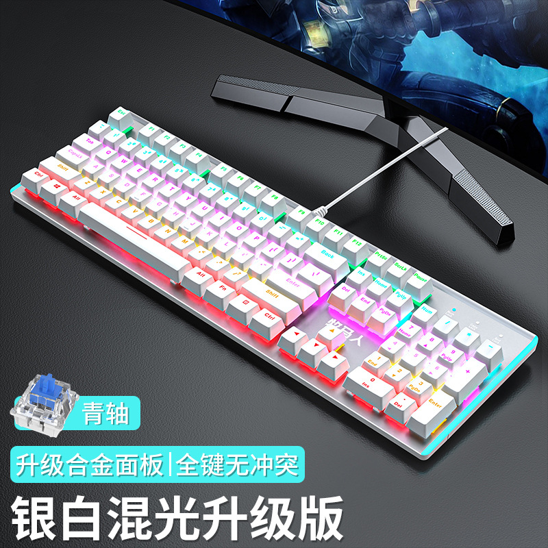 • E-스포츠 트루 메카니컬 샤프트 - 실버 화이트 혼합 조명 [라이트 티 샤프트] 측면 날개 스트리머丨 풀 키 롤오버 없음 - 104 키 - 표준 구성