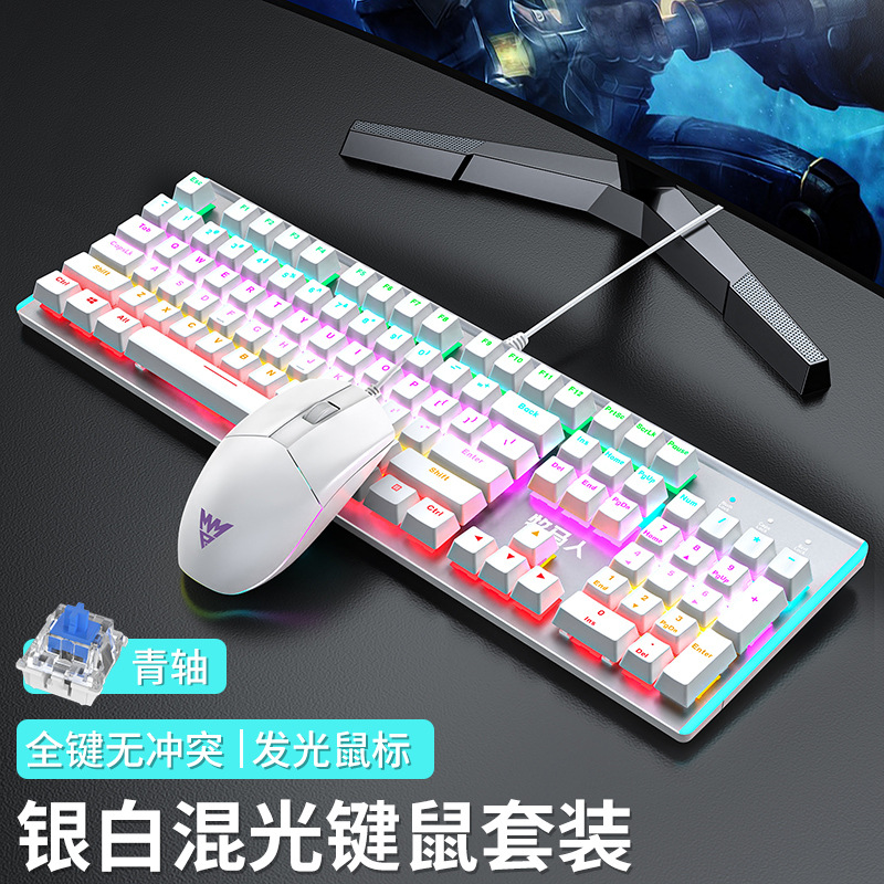 • E-스포츠 트루 메카니컬 샤프트 - 실버 화이트 블루 라이트 [2피스 세트 - 그린 샤프트] + M2 야광 마우스 - 없음 - 104키 - 표준 구성