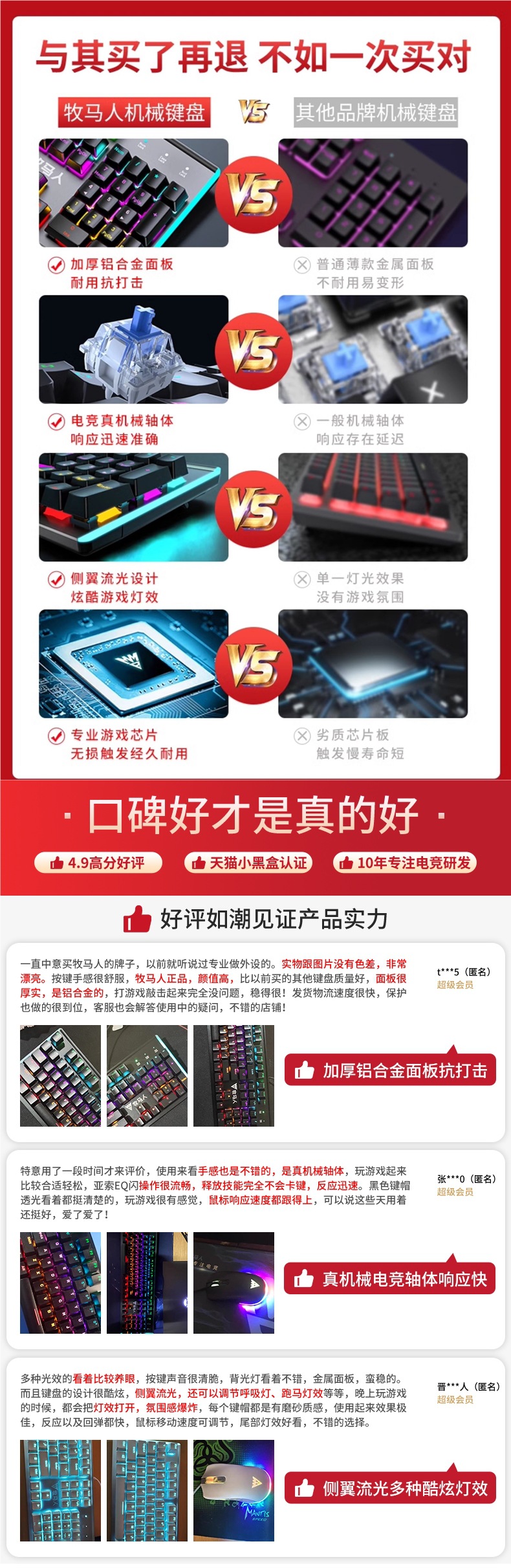• E-스포츠 트루 메카니컬 샤프트 바디 - 흑요석 블랙 혼합 조명 [타이핑 레드 샤프트] 측면 날개 스트리머丨 풀 키 롤오버 없음 - 104 키 - 표준 구성