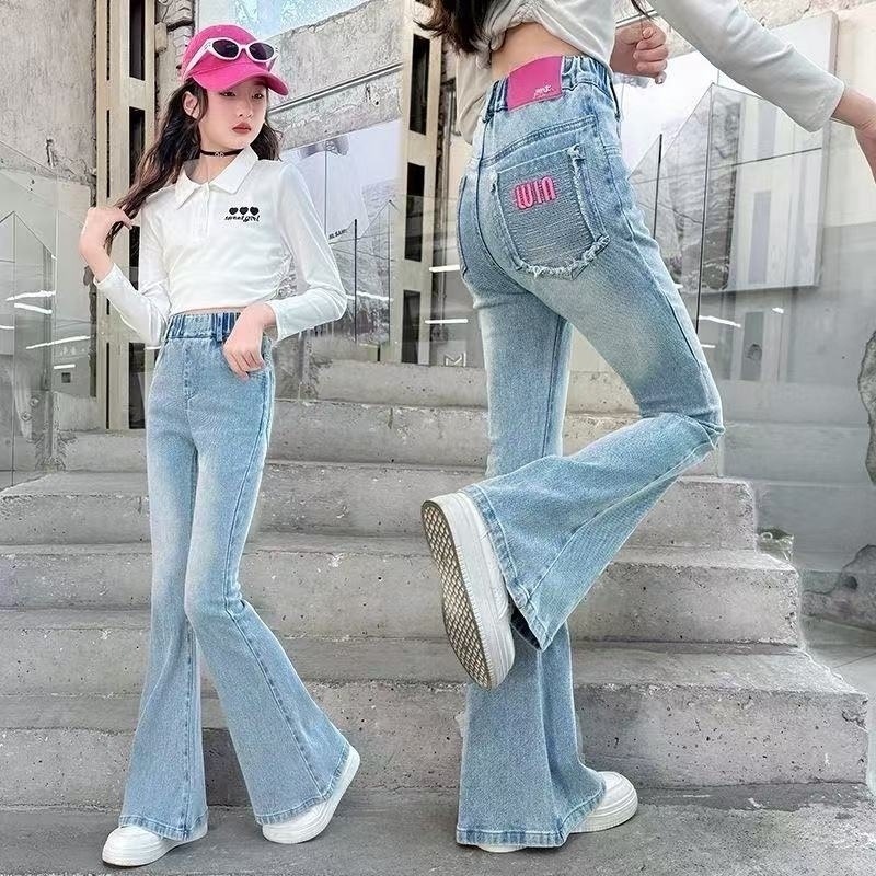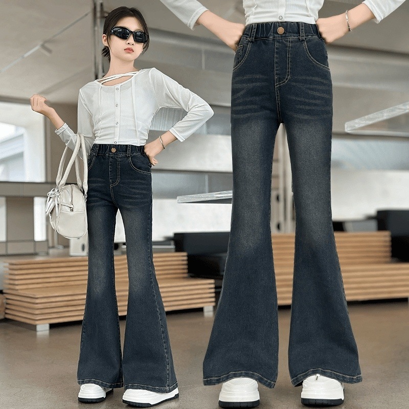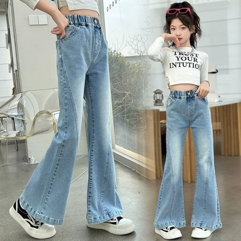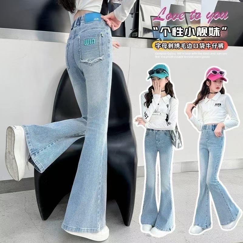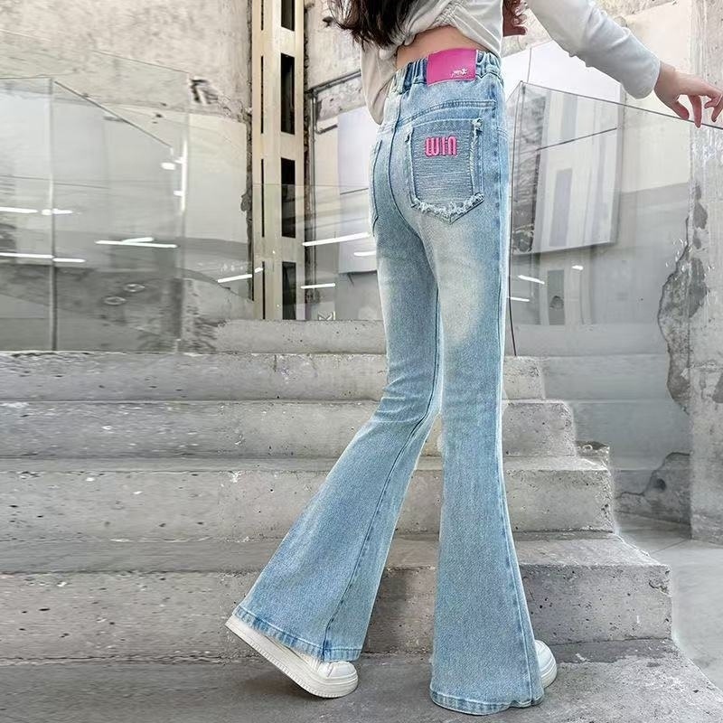 여아 여름 청바지 2025 슬림하고 얇은 새로운 스타일의 바지 어린이 중대형 어린이 유행 탄성 플레어 바지스토어 가기