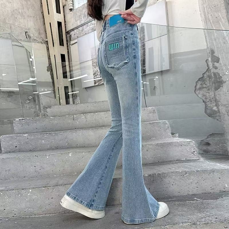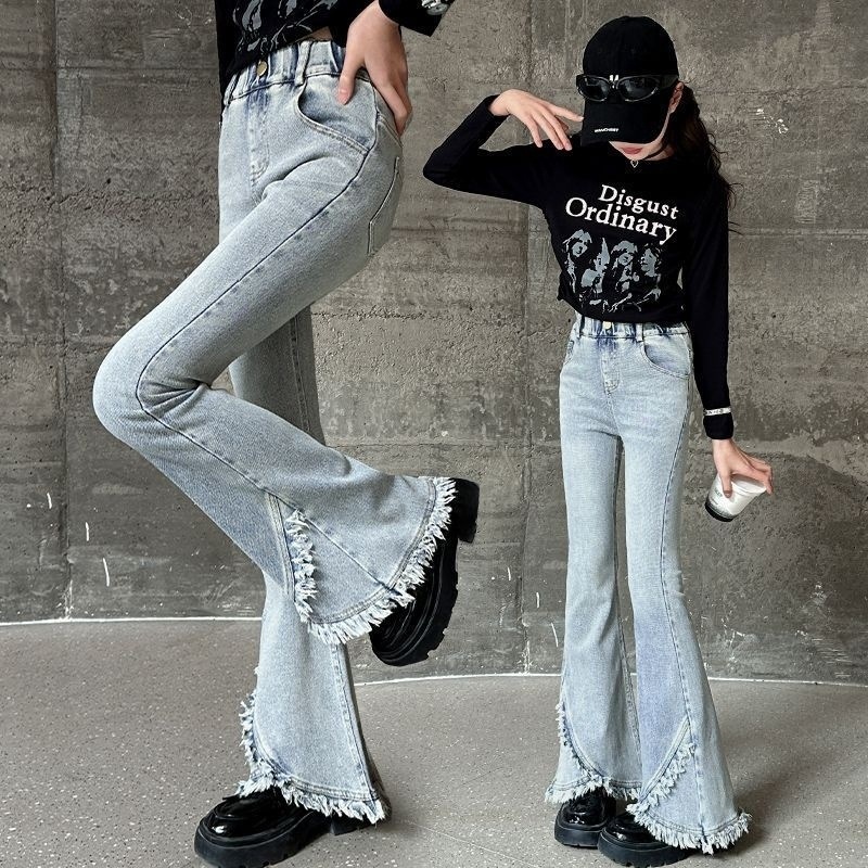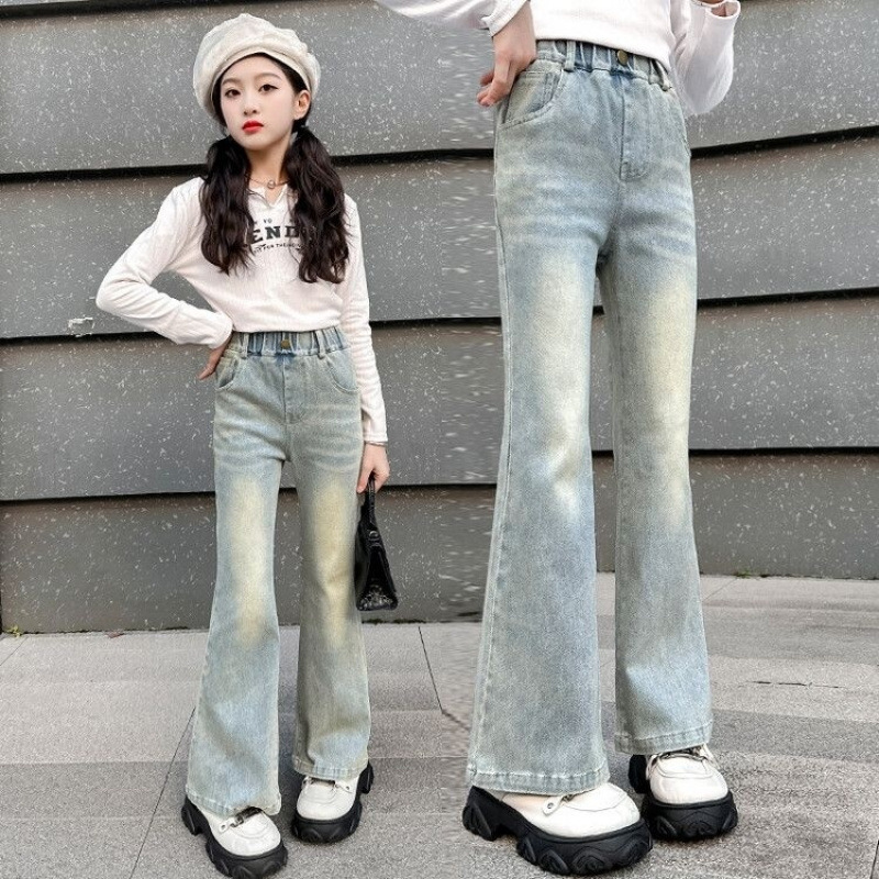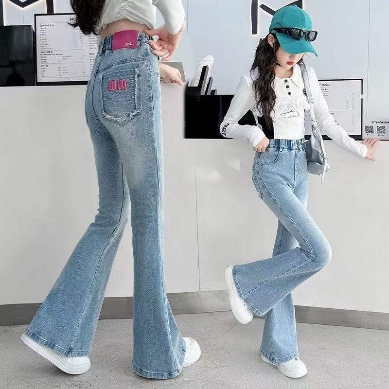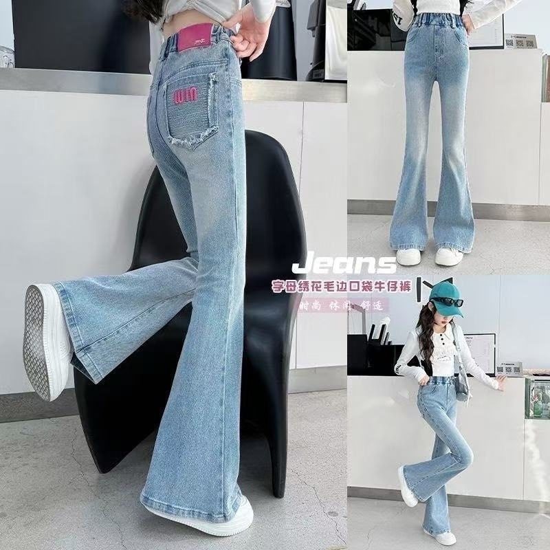 여아 여름 청바지 2025 슬림하고 얇은 새로운 스타일의 바지 어린이 중대형 어린이 유행 탄성 플레어 바지스토어 가기