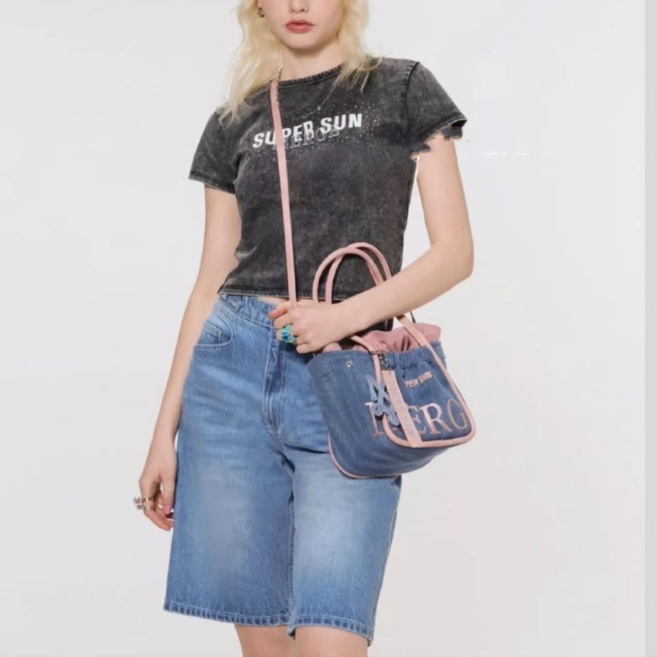 2025 핫 스타일 스몰 데님 대용량 토트 백 2025 새로운 패션 다용도 휴대용 겨드랑이 숄더백