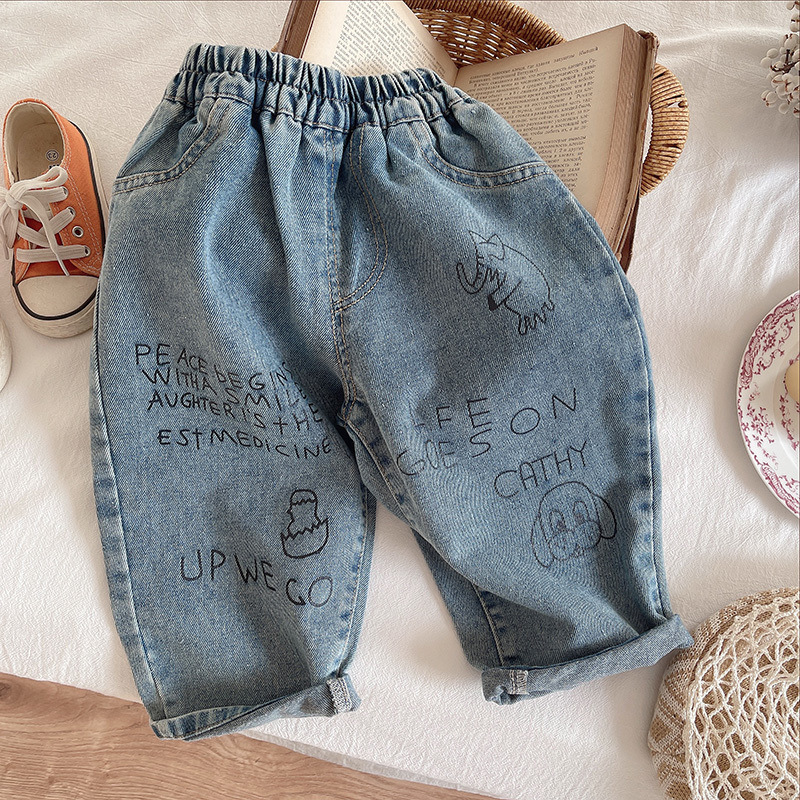 • 자수 안감 + 스마일리 페이스 T + 심플 드로잉 청바지