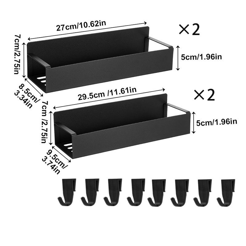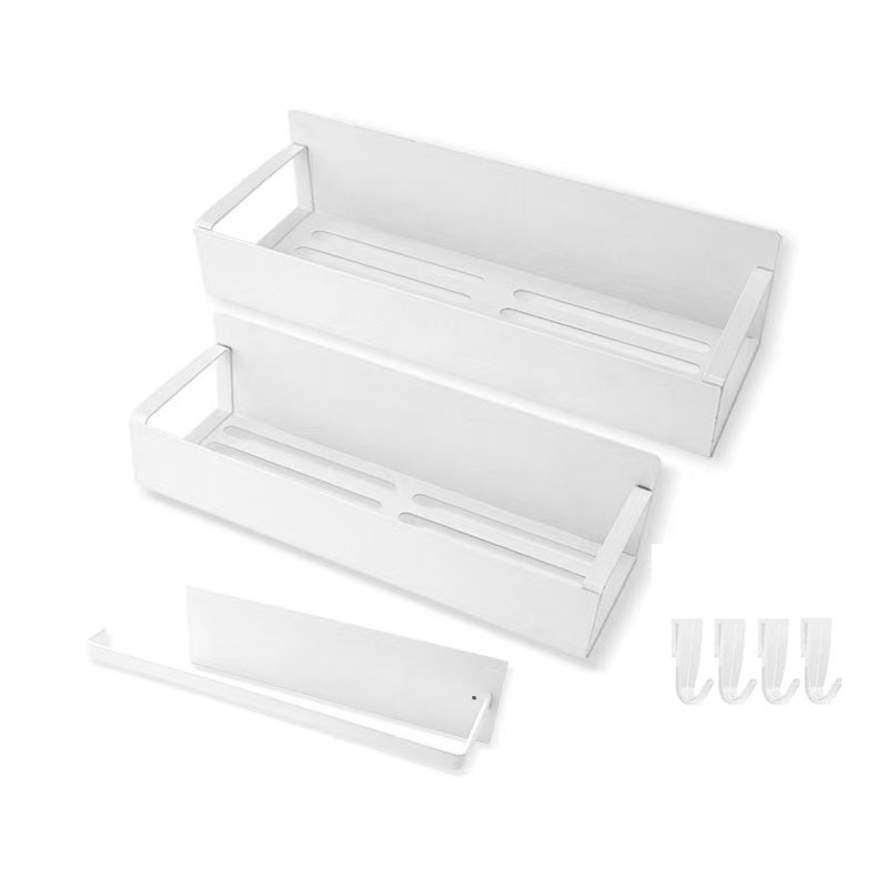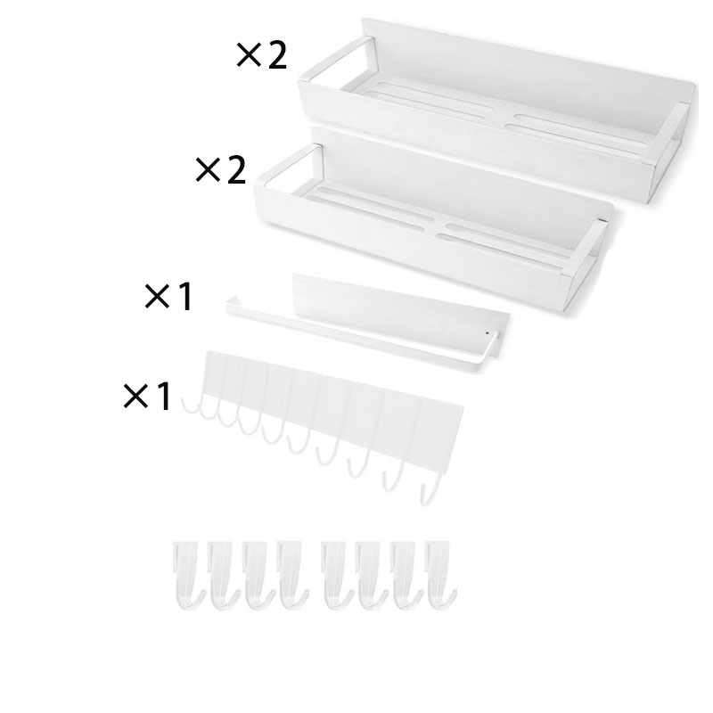 • 자석 부착형: 화이트 선반 2개 세트 (박스 포장 + 후크 4개)