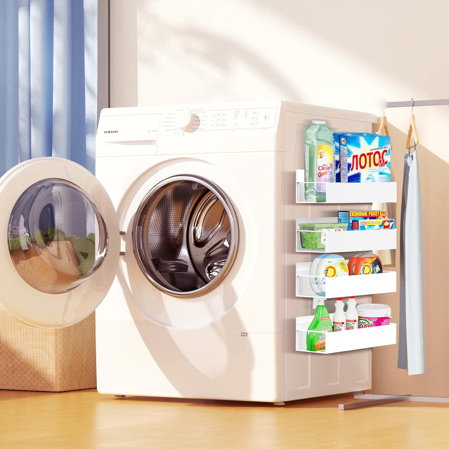 • 자석 부착형: 화이트 선반 4개 세트 B형 (박스 포장 + 후크 4개)