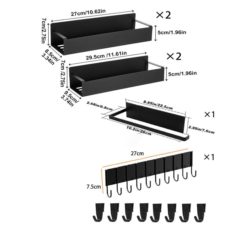 • 자석 버전: 검정색 프레임 2피스 세트(박스형 + 후크 4개)